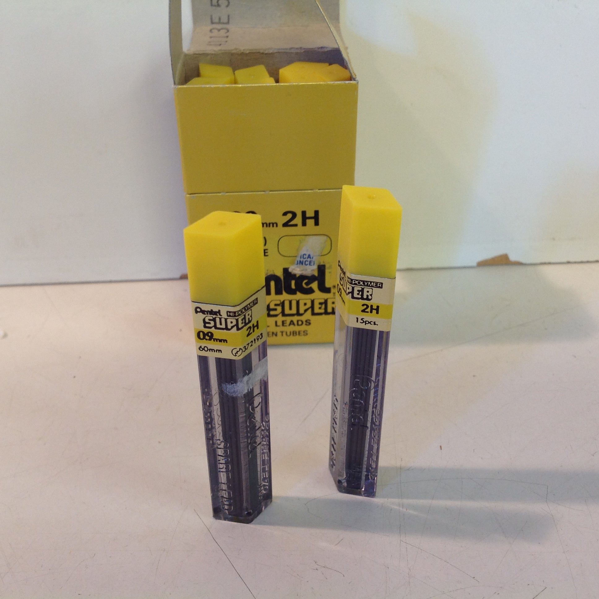 Vintage 1990's Pentel Mechanical Pencil NOS Refill Hi-Polymer Super Thick 0.9mm Lead "2H" Box of 12 Tubes of 15