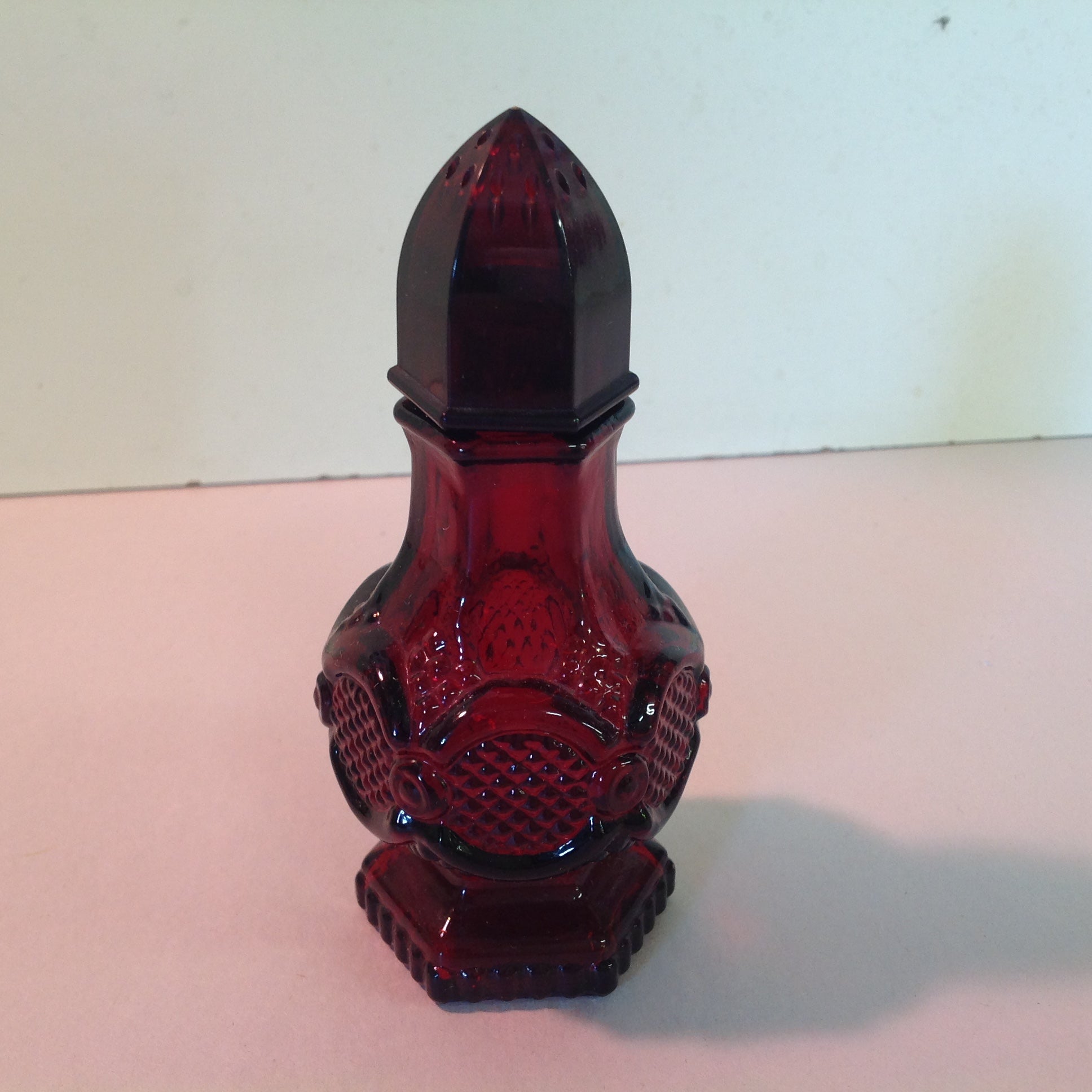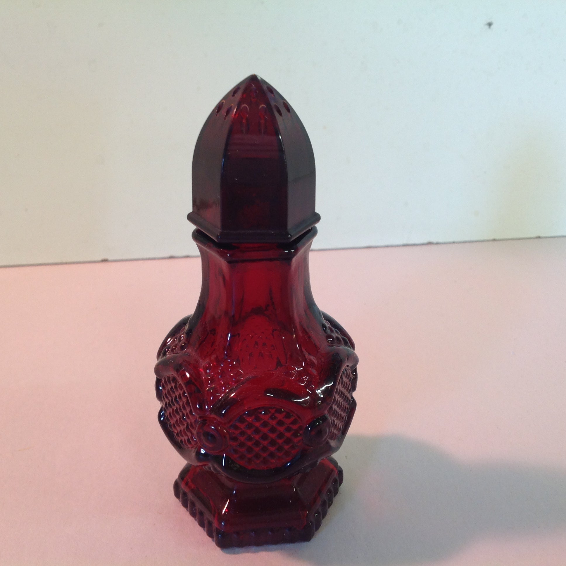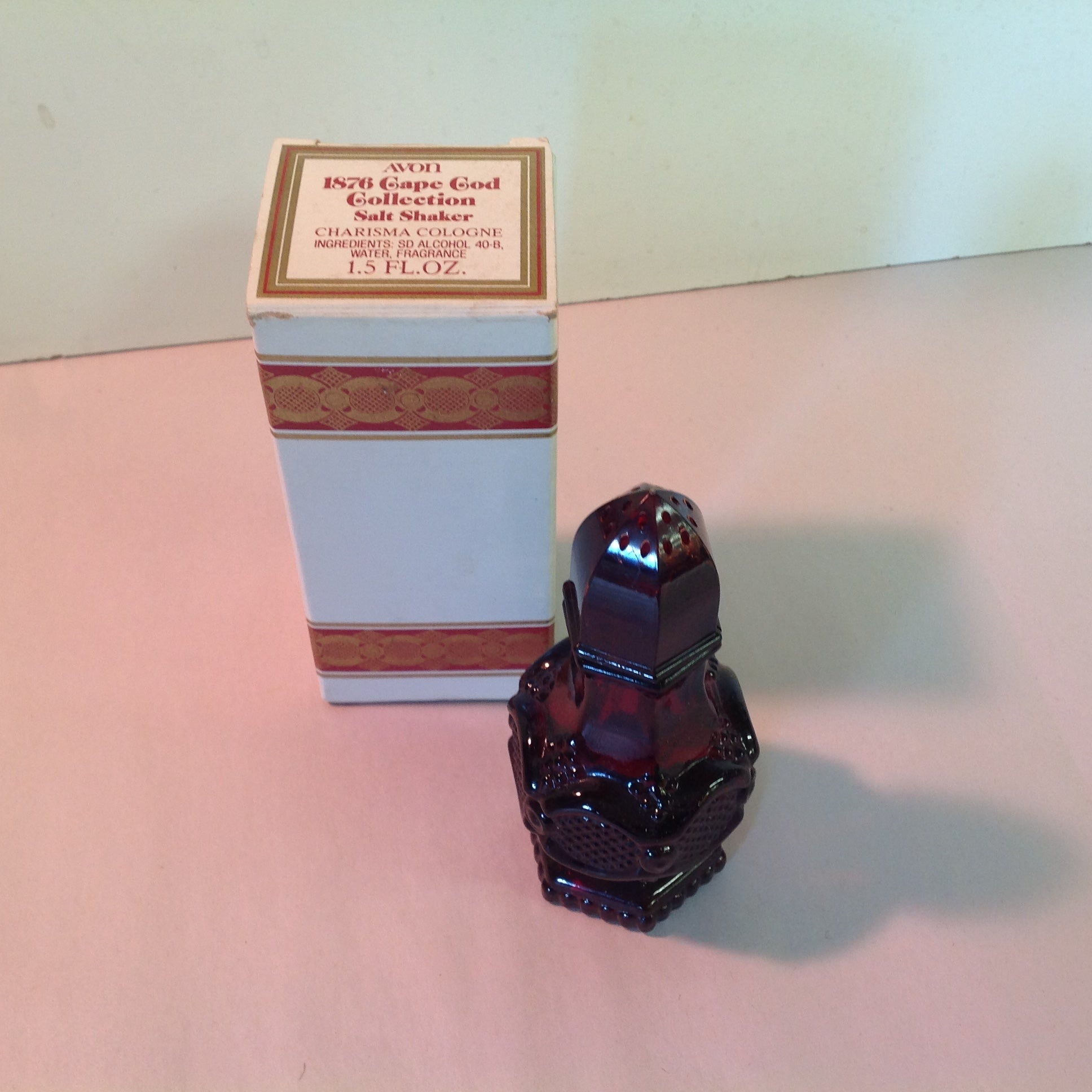Vintage 1991 Avon 1876 Cape Cod Collection Salt Shaker Charisma Cologne Red Sandwich Glass Unused with Original Box