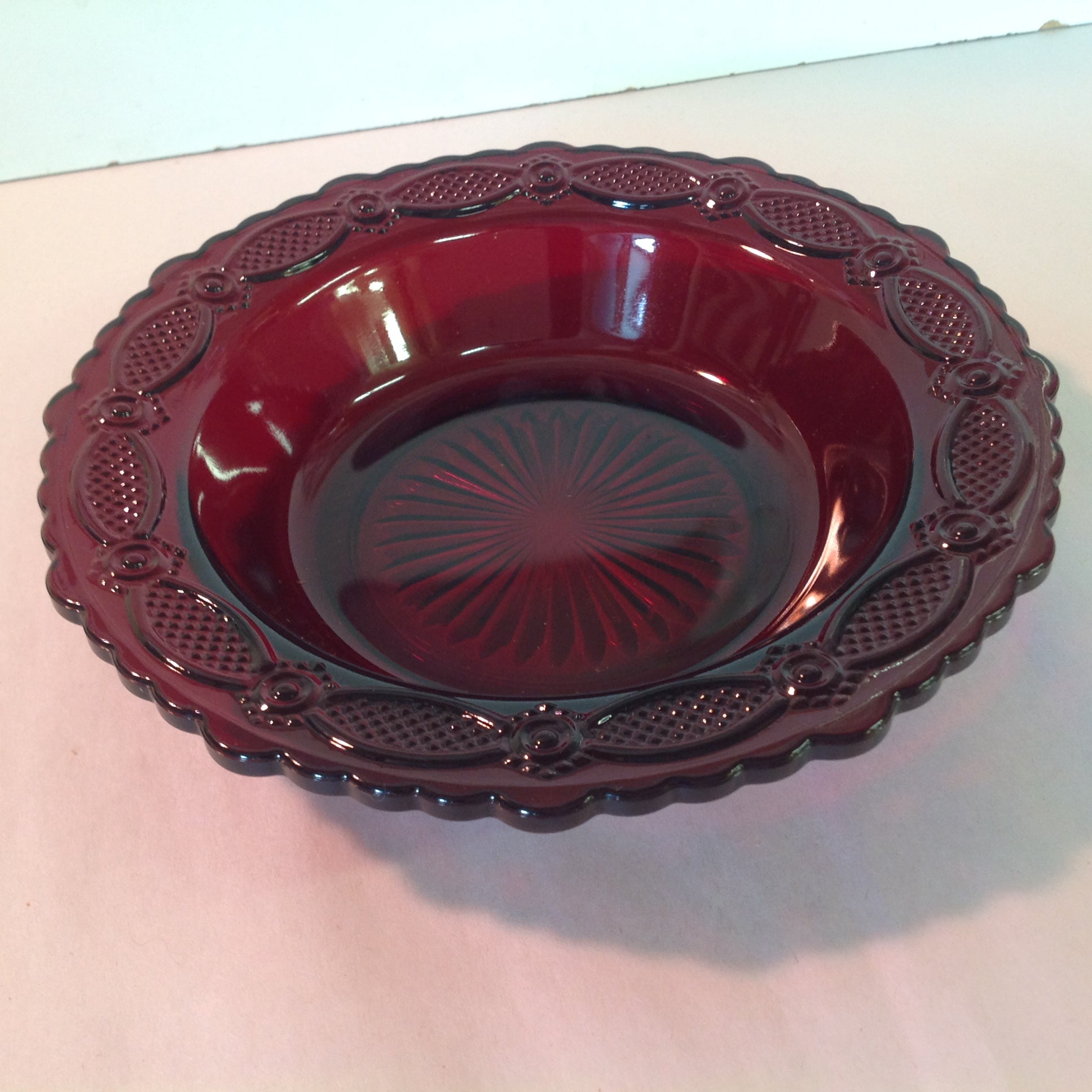 Vintage 1991 Avon 1876 Cape Cod Collection Soup/Cereal Bowl Red Sandwich Glass Unused with Original Box