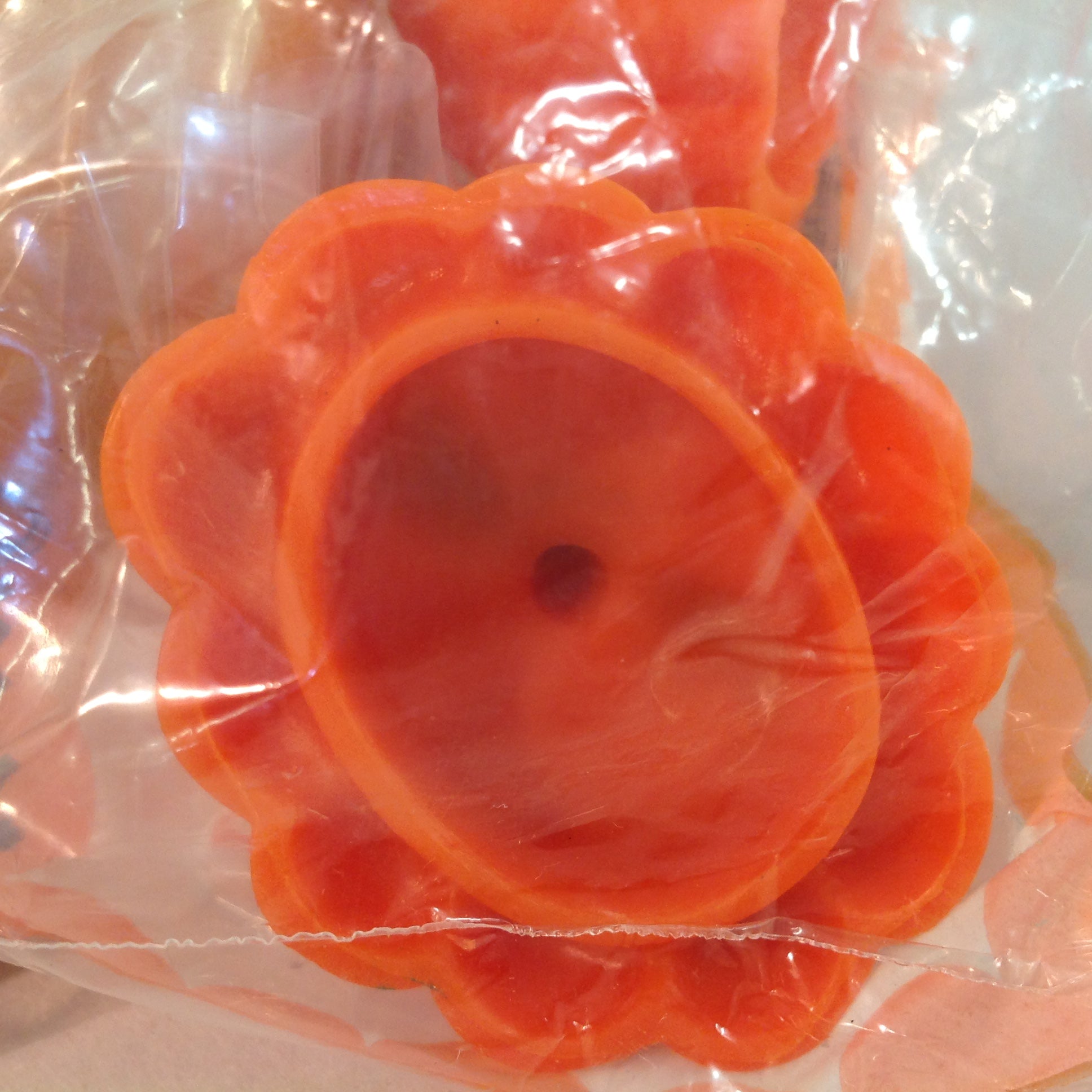 This is a vintage N(ew) O(ld) S(tock) item, in good NOS condition, with light signs of age/wear; the toy is still in its original bag, which has not been opened, and shows mild rubbing to surface of bag, minor points of blemish/distress. Interior toy appears unused; clean, smooth/glossy, with excellent preservation of color/sheen and figural embellishments still sharp/clear. There are no excessive nicks, chips, dents, divots, scrapes, scratches, scuffs, cracks, breaks, stains, residue or repairs. The toy in bag measures approx 4.5" x 5".