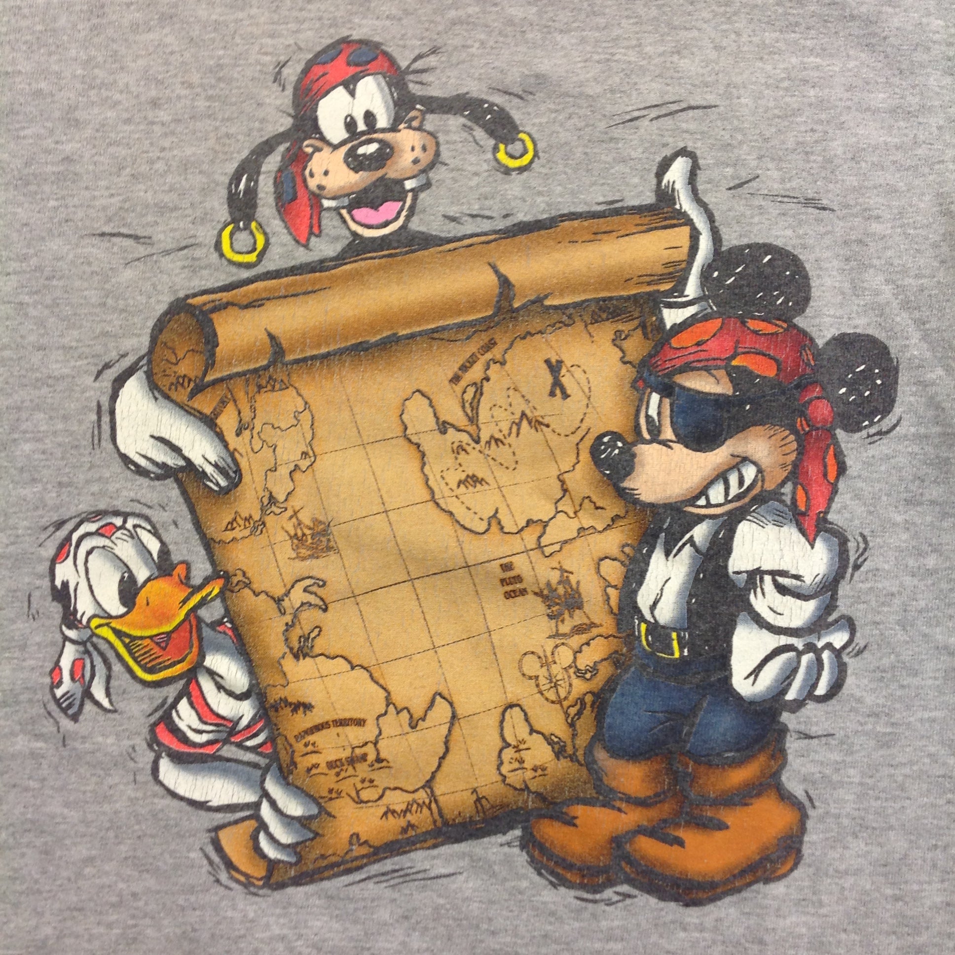 Vintage 2000's Walt Disney World Kids Child's T-Shirt Pirates of the Caribbean Mickey Goofy Donald Gray 3T