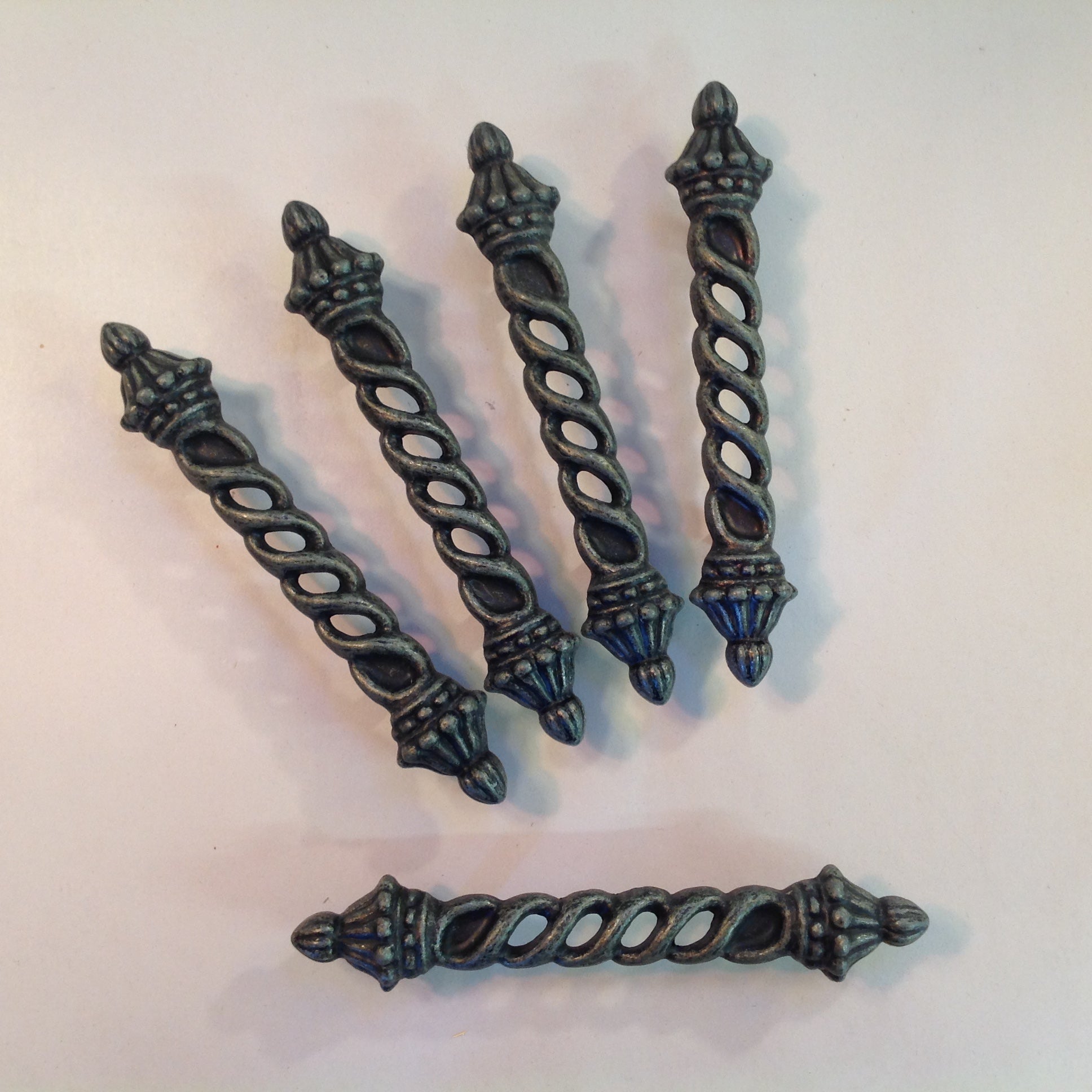 Vintage Ajax Pewter Spiral Drawer Pull Handle Finial Cap