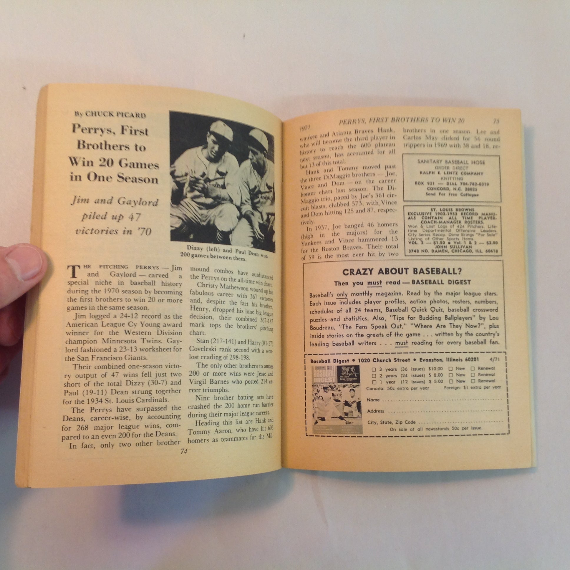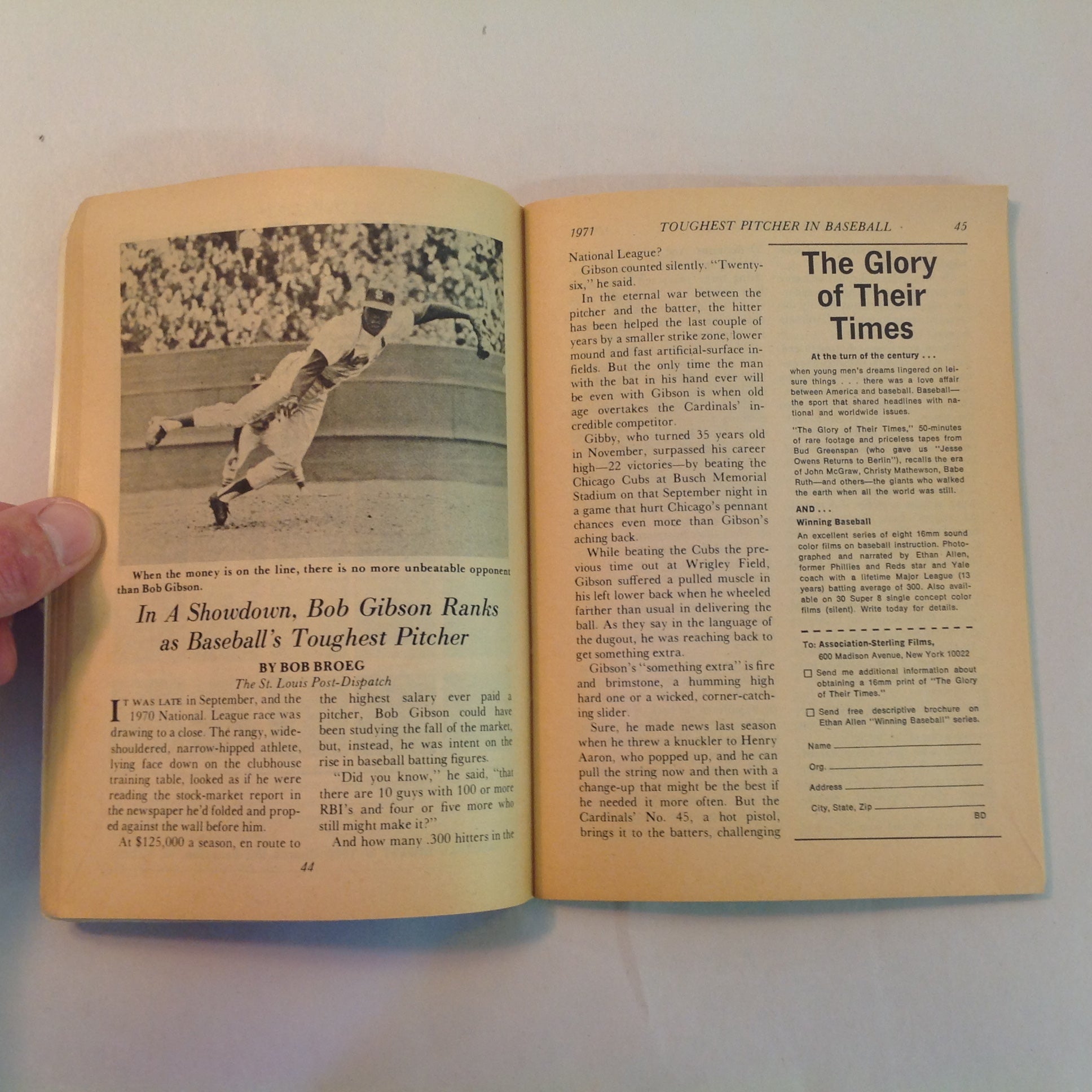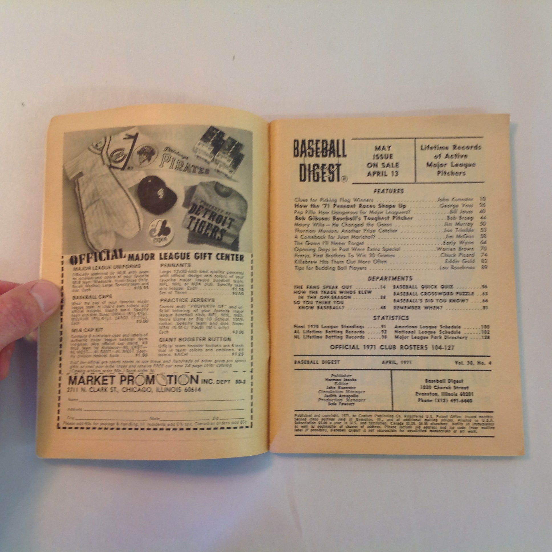 Vintage Apr 1971 Baseball Digest Magazine Bob Gibson: Toughest Pitcher in Baseball