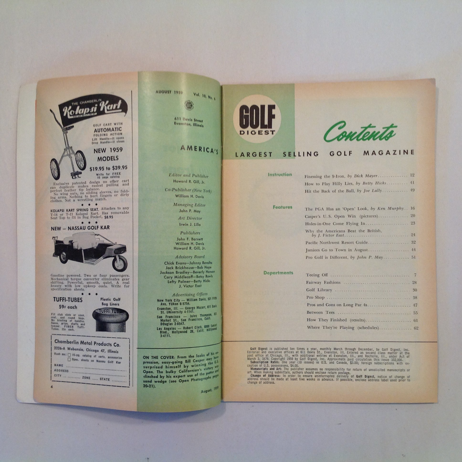 Vintage August 1959 GOLF DIGEST Magazine Bill Casper US Open PGA 9-Irons