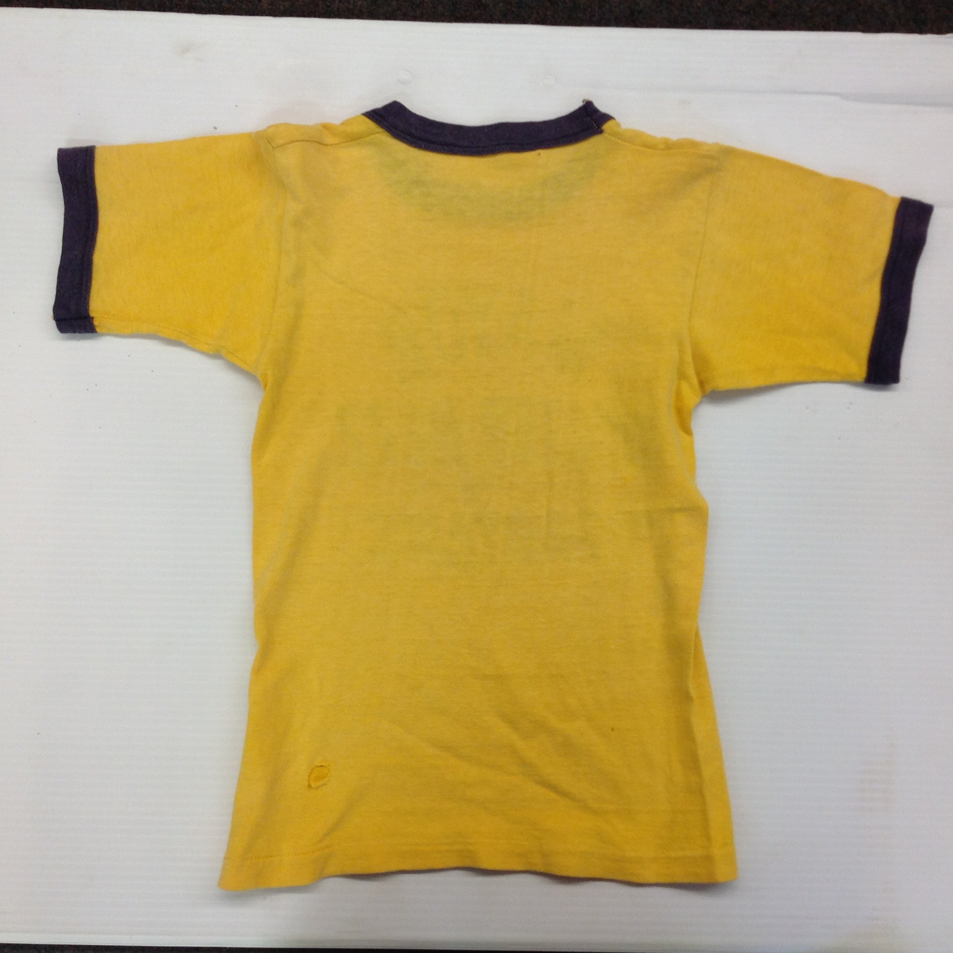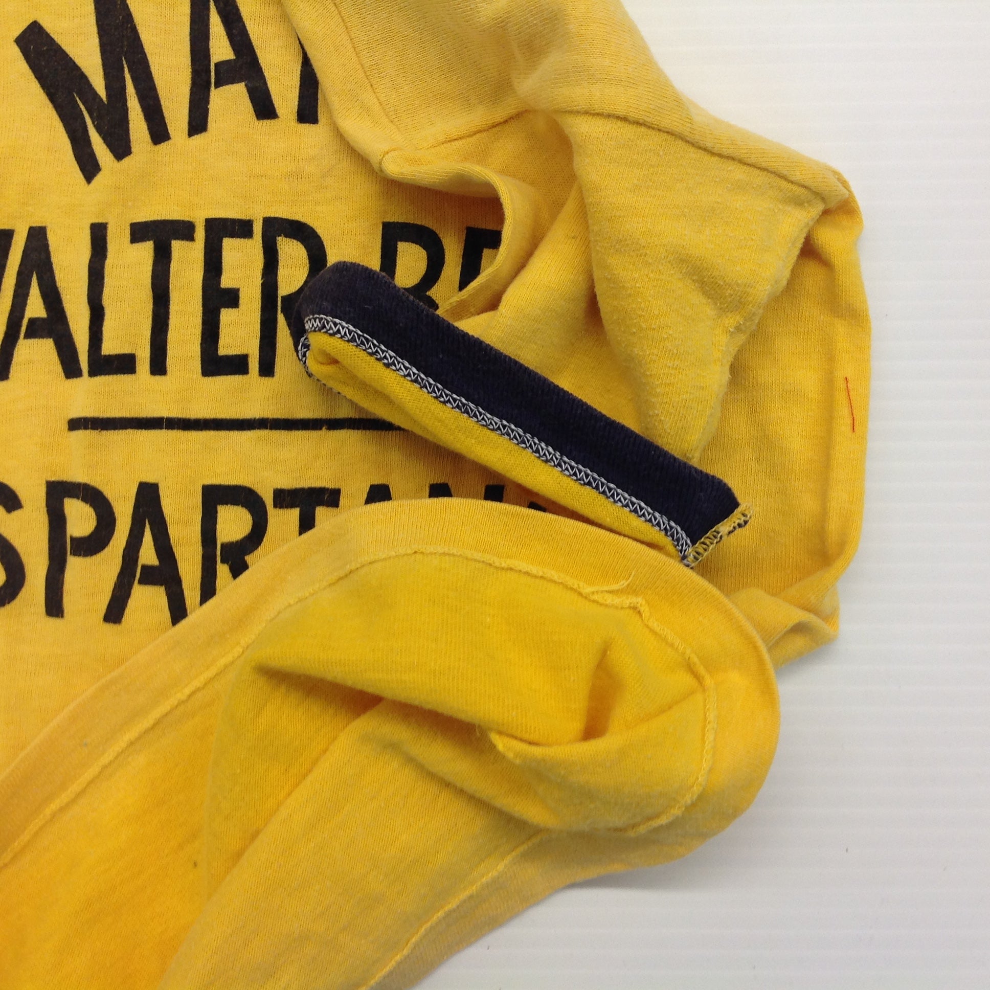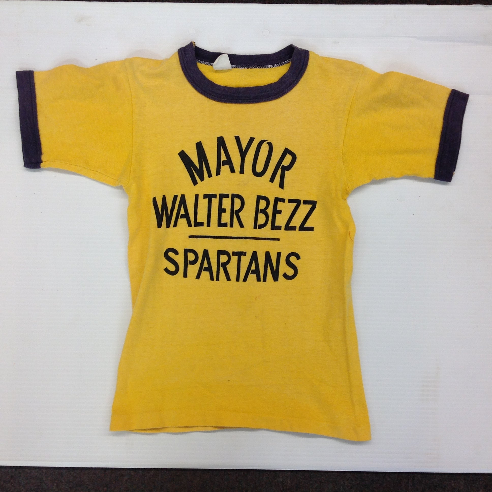 Vintage Child's Yellow Blue Ringer Medium T-Shirt Mayor Walter Bezz Spartans Eastpointe Michigan