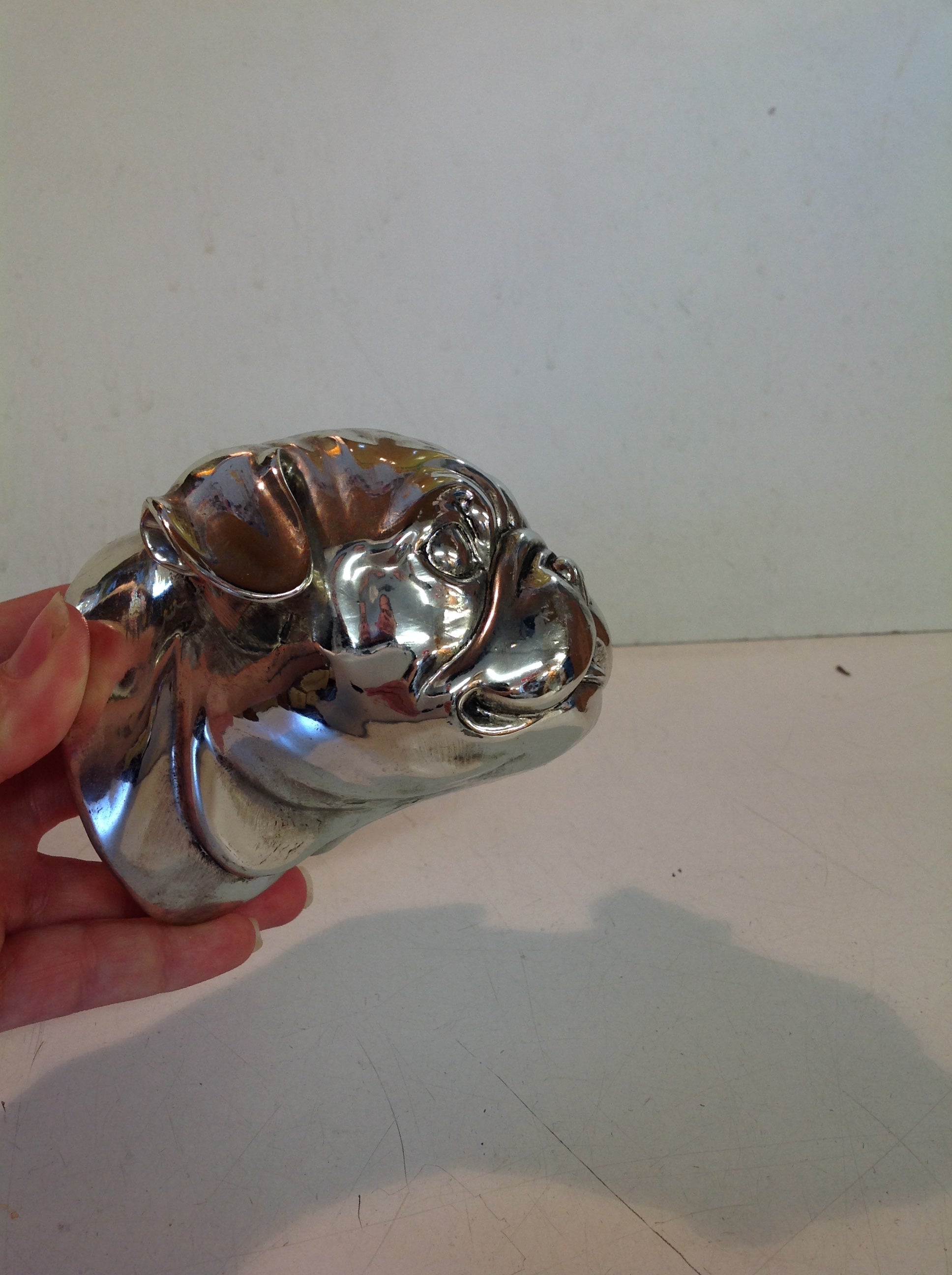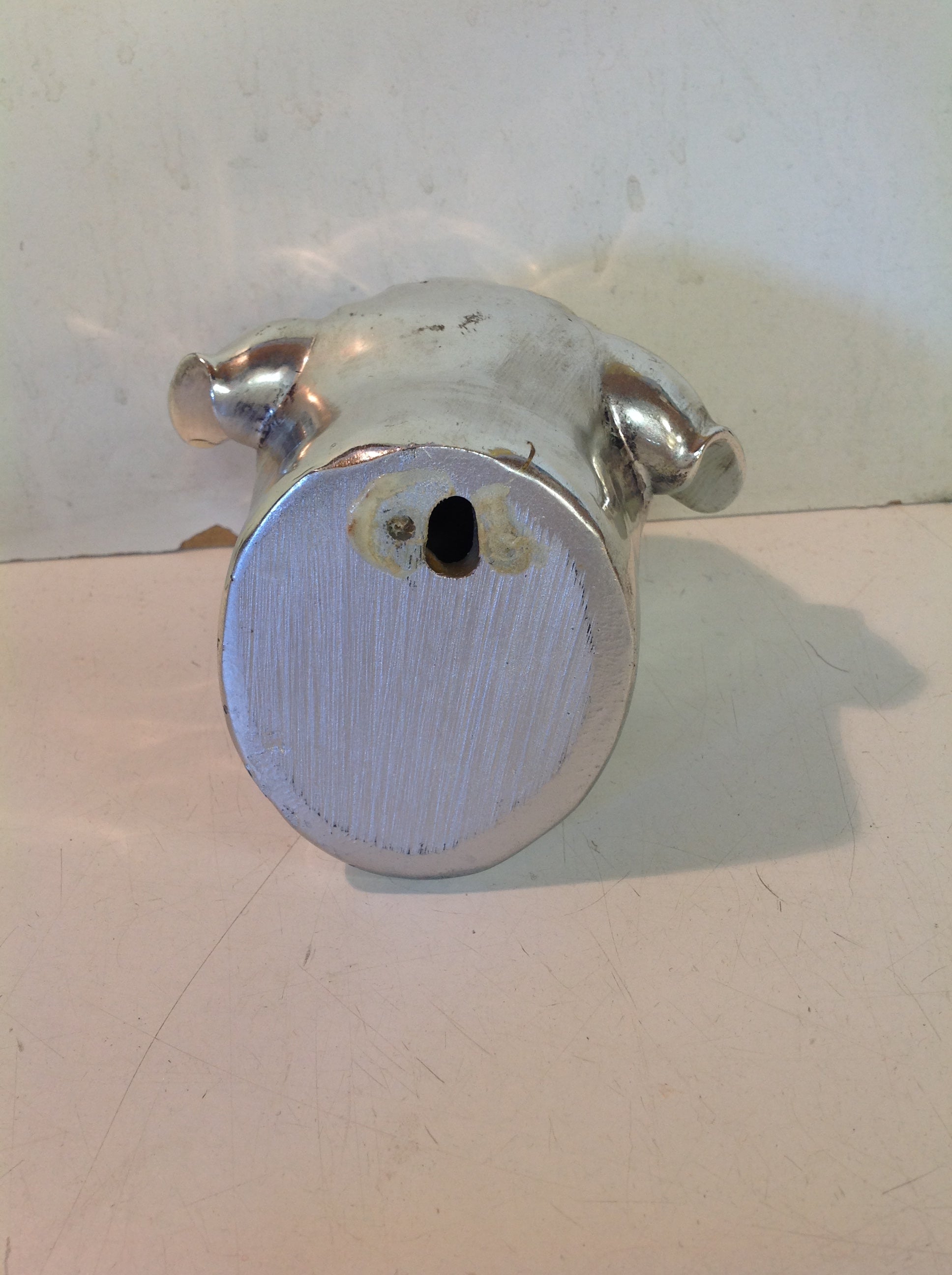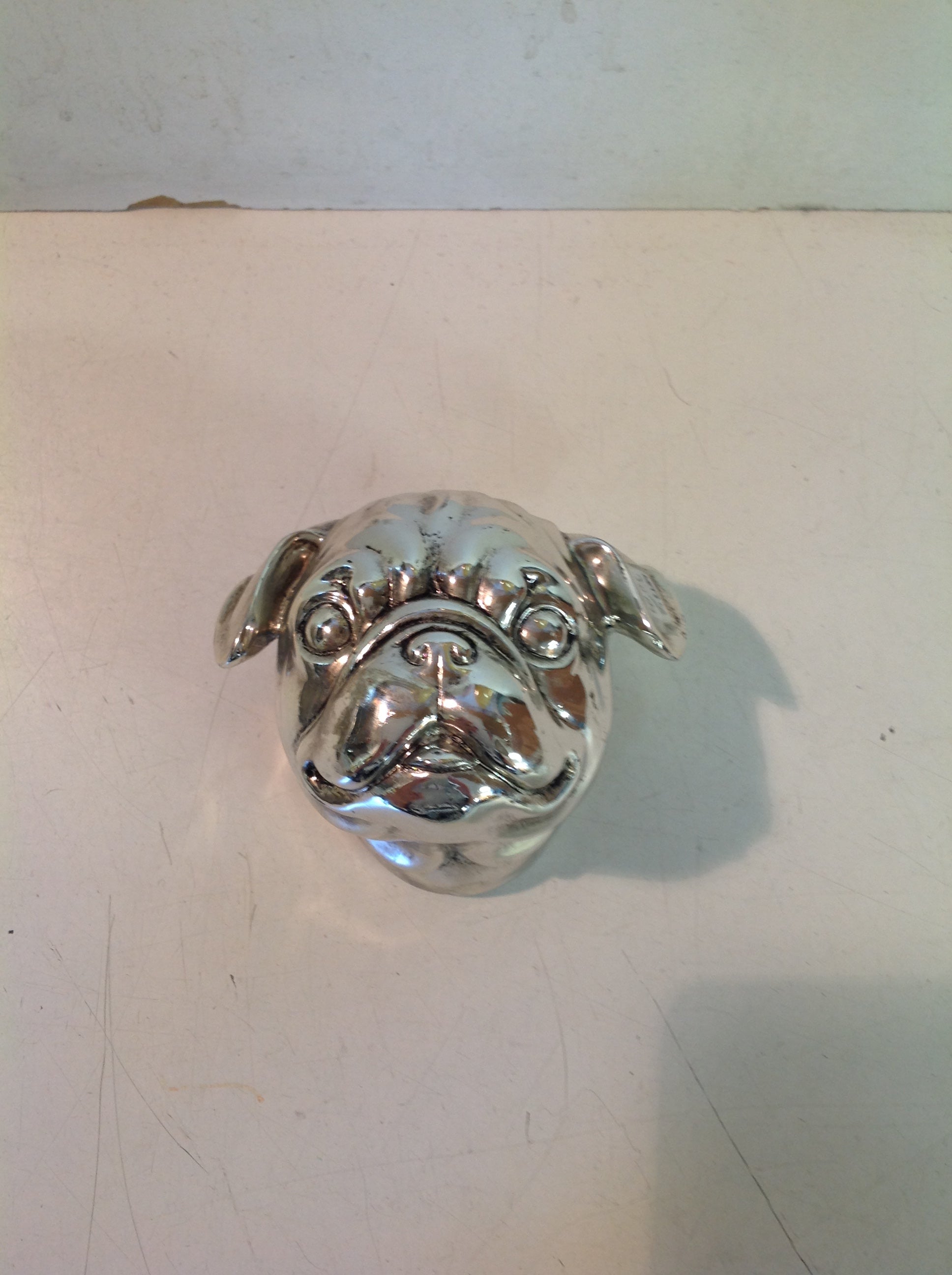 This is a vintage used item, in good used condition, with light signs of age/wear; there is mild rubbing to surface of metal, some wear along/about rear of figural, minuscule points of blemish/distress. Overall metal quality is good; clean, smooth/glossy, with excellent preservation of color/sheen and figural embellishments still sharp/clear. There are no excessive nicks, chips, dents, divots, scrapes, scratches, scuffs, cracks, breaks, stains, residue or repairs. The wall hanger measures approx 4" x 3" x 4".