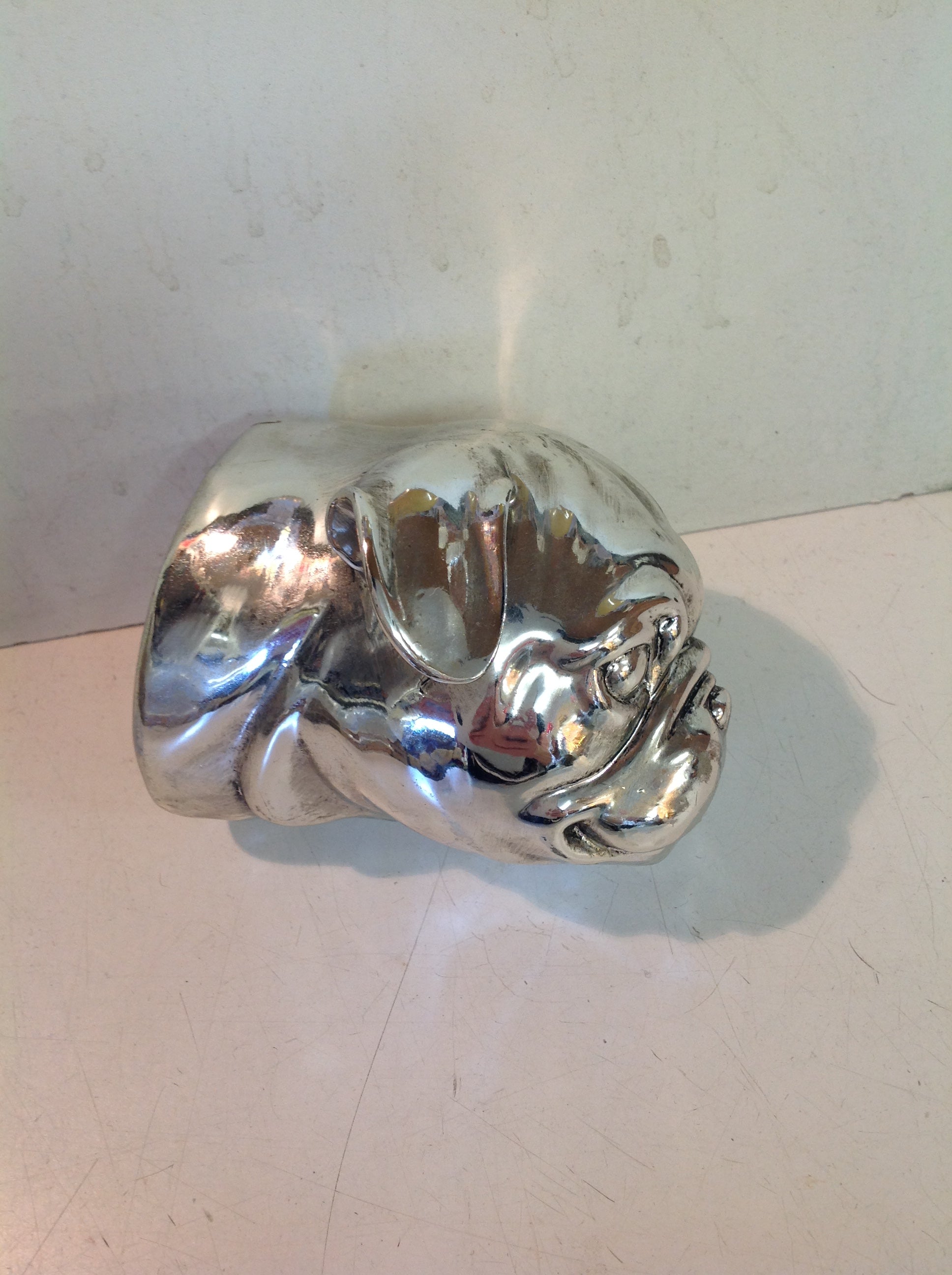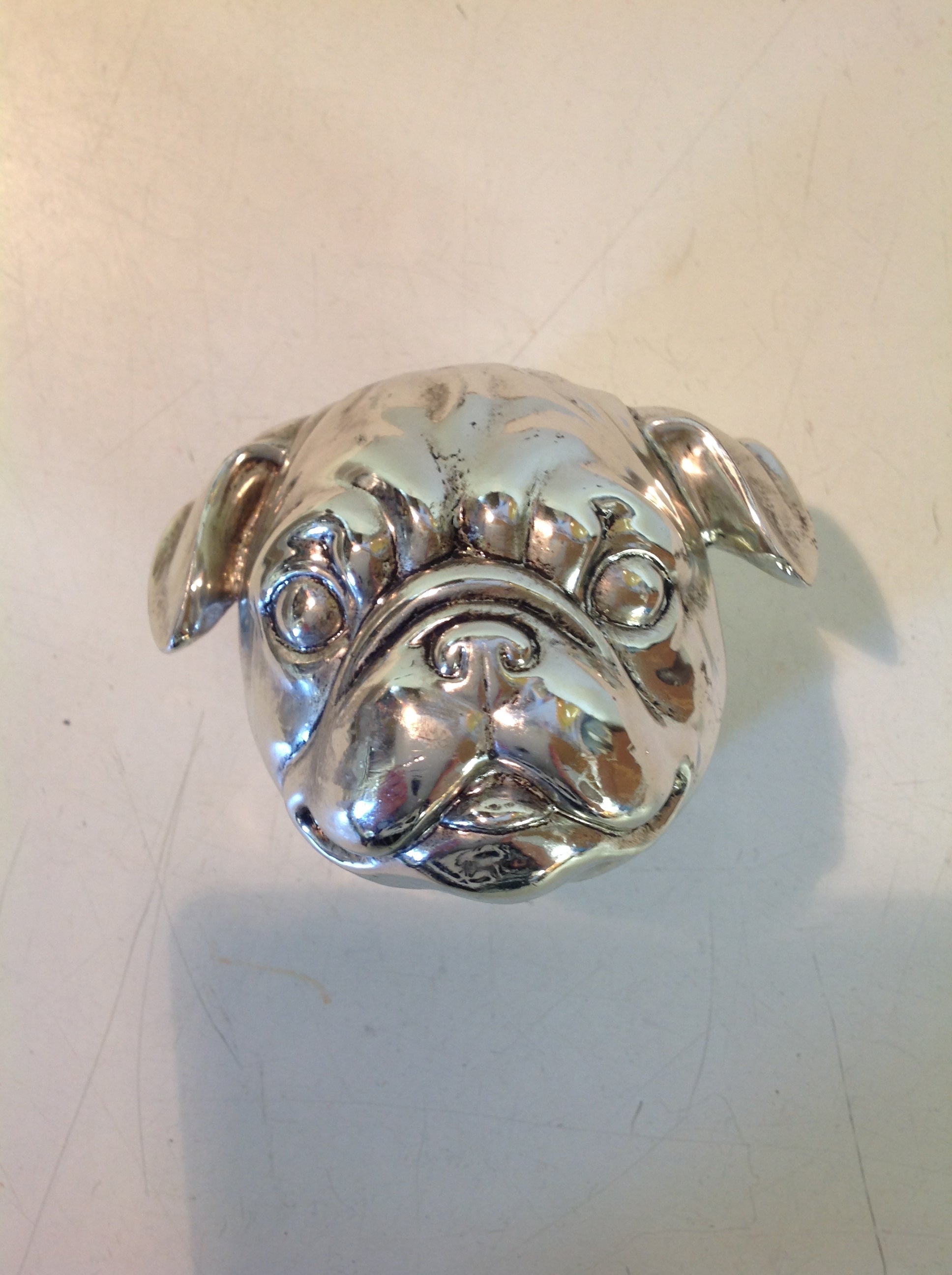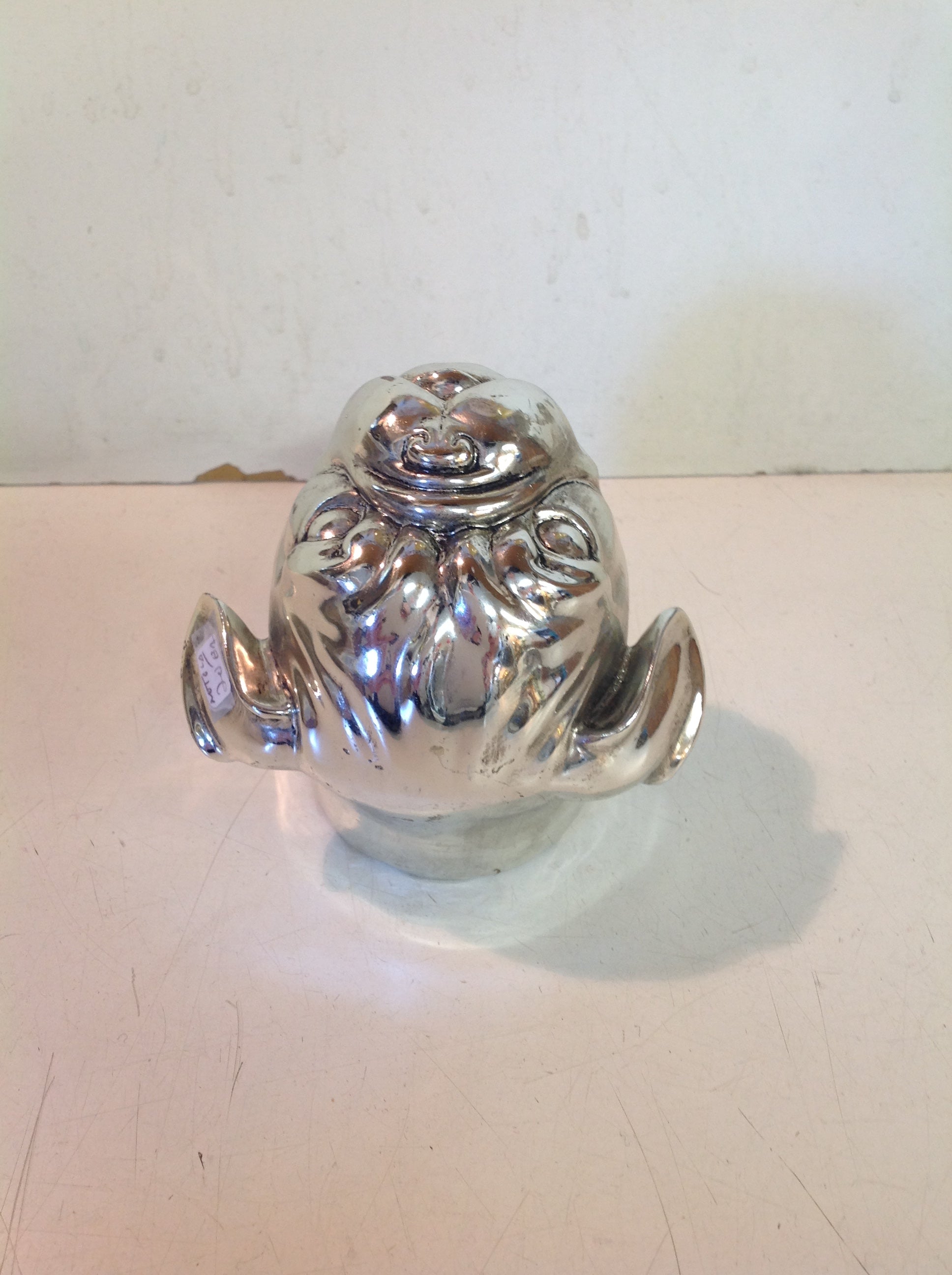 This is a vintage used item, in good used condition, with light signs of age/wear; there is mild rubbing to surface of metal, some wear along/about rear of figural, minuscule points of blemish/distress. Overall metal quality is good; clean, smooth/glossy, with excellent preservation of color/sheen and figural embellishments still sharp/clear. There are no excessive nicks, chips, dents, divots, scrapes, scratches, scuffs, cracks, breaks, stains, residue or repairs. The wall hanger measures approx 4" x 3" x 4".