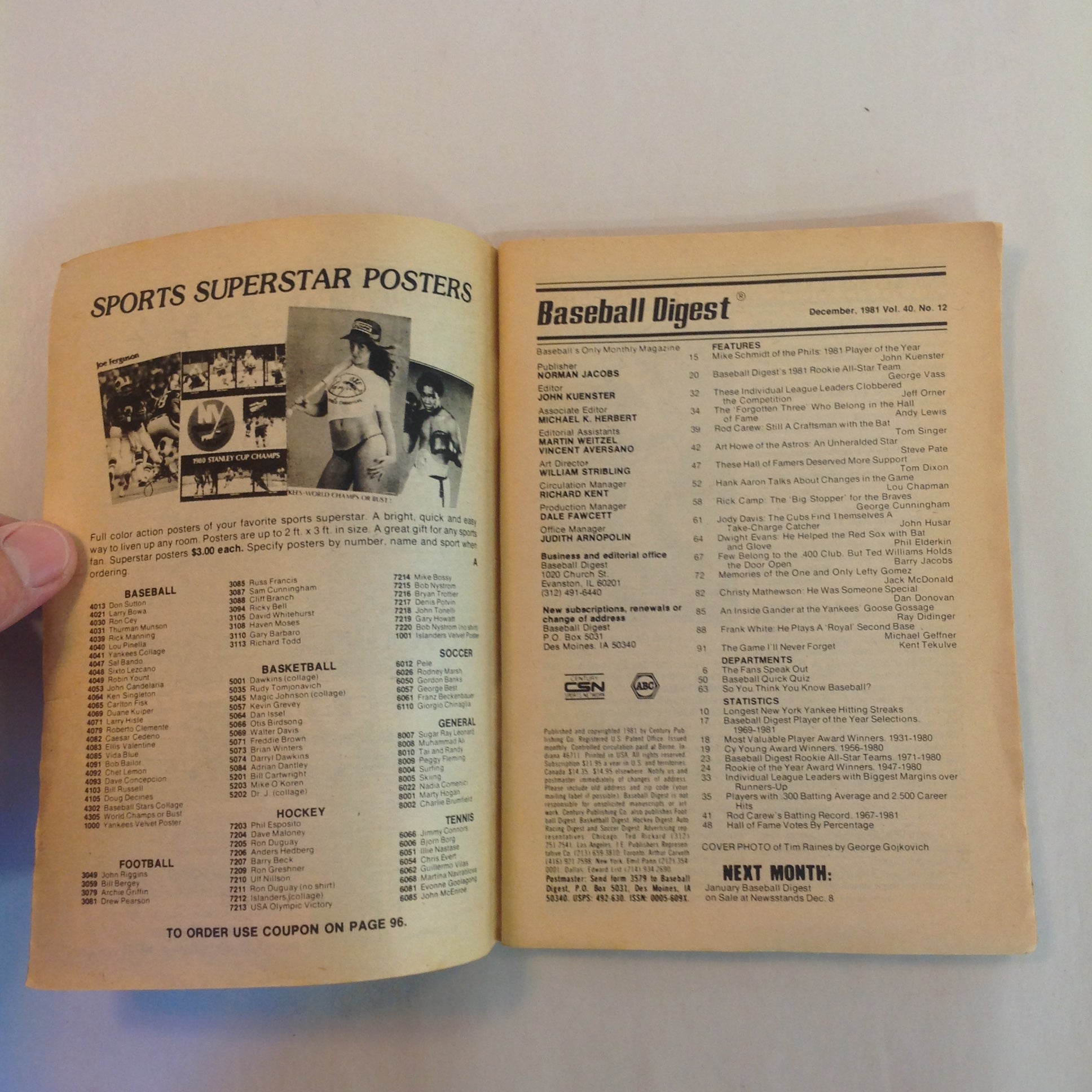 Vintage Dec 1981 Baseball Digest Magazine Tim Raines: Rookie Base-Stealing Phenom