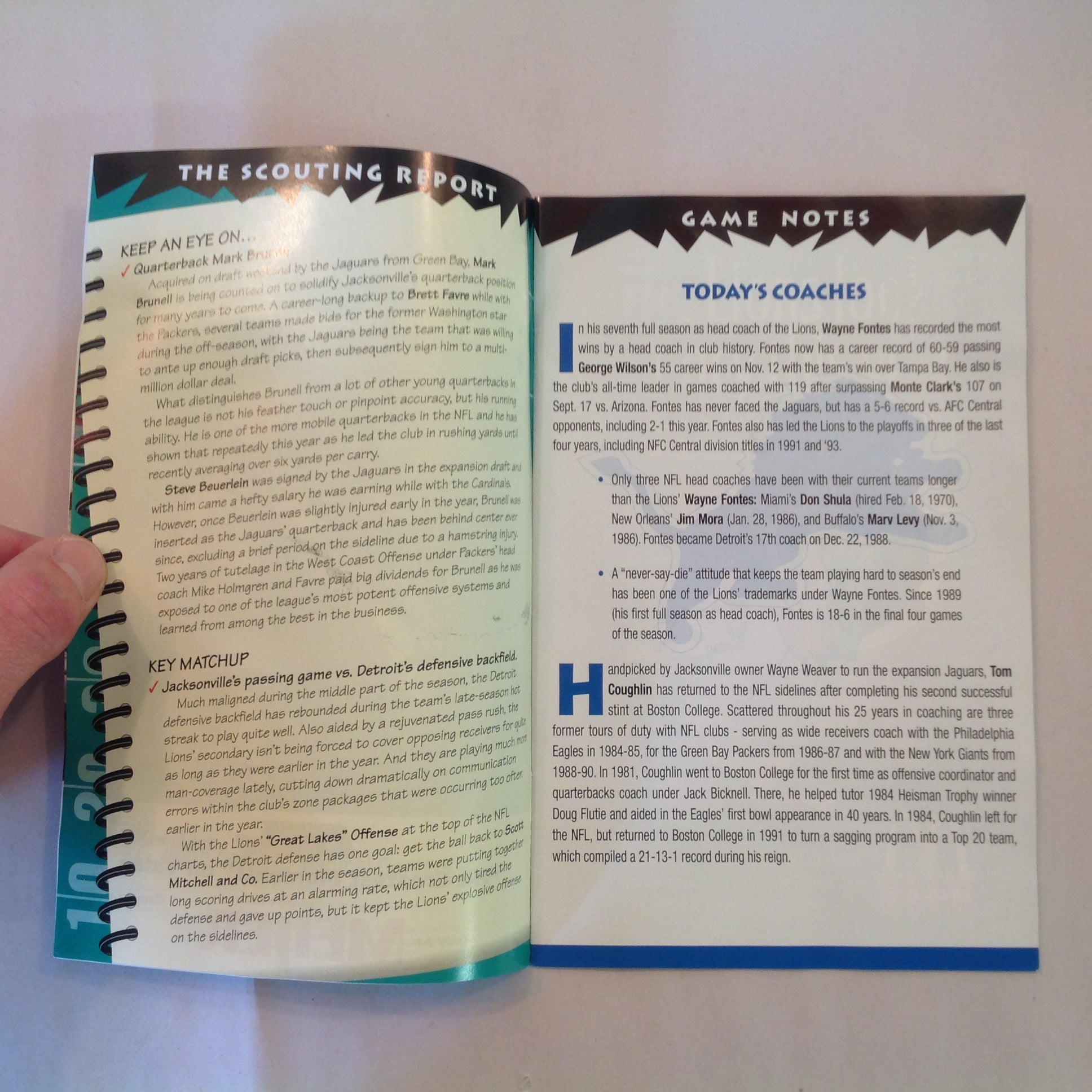 Vintage December 17 1995 Detroit Lions Presents: Kickoff Playbook Lions Vs. Jacksonville Jaguars