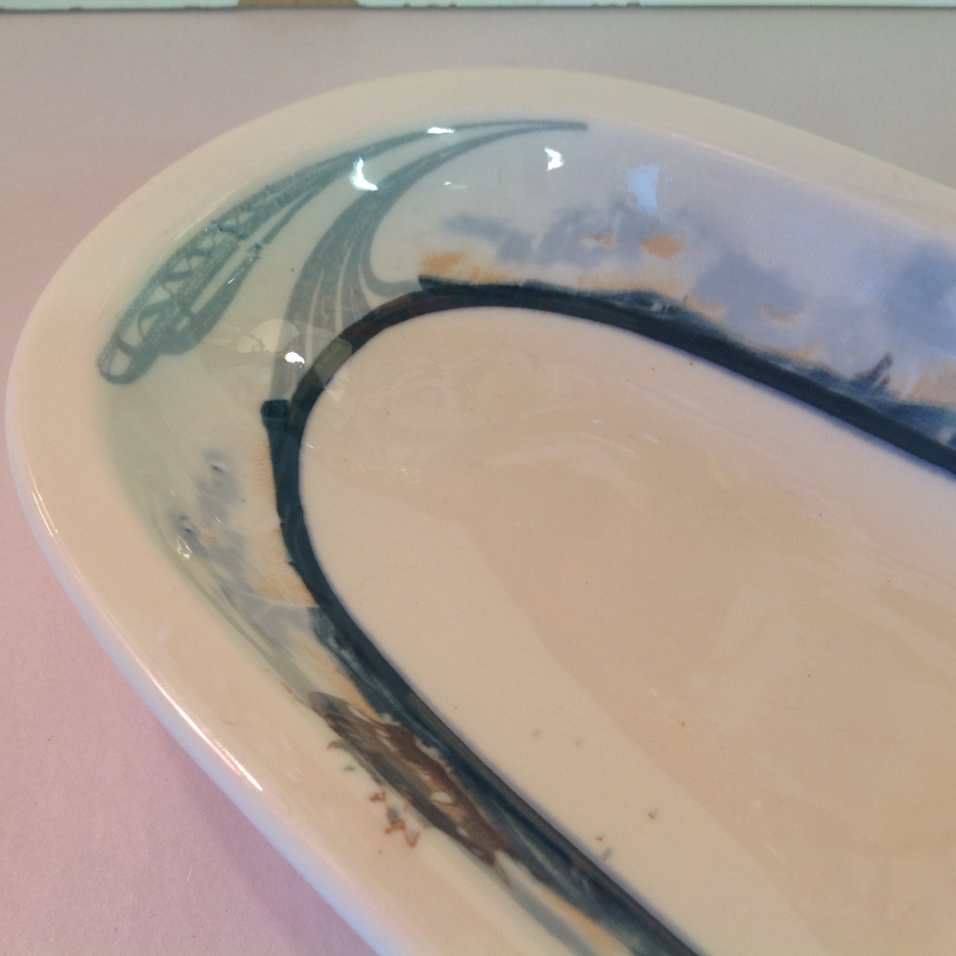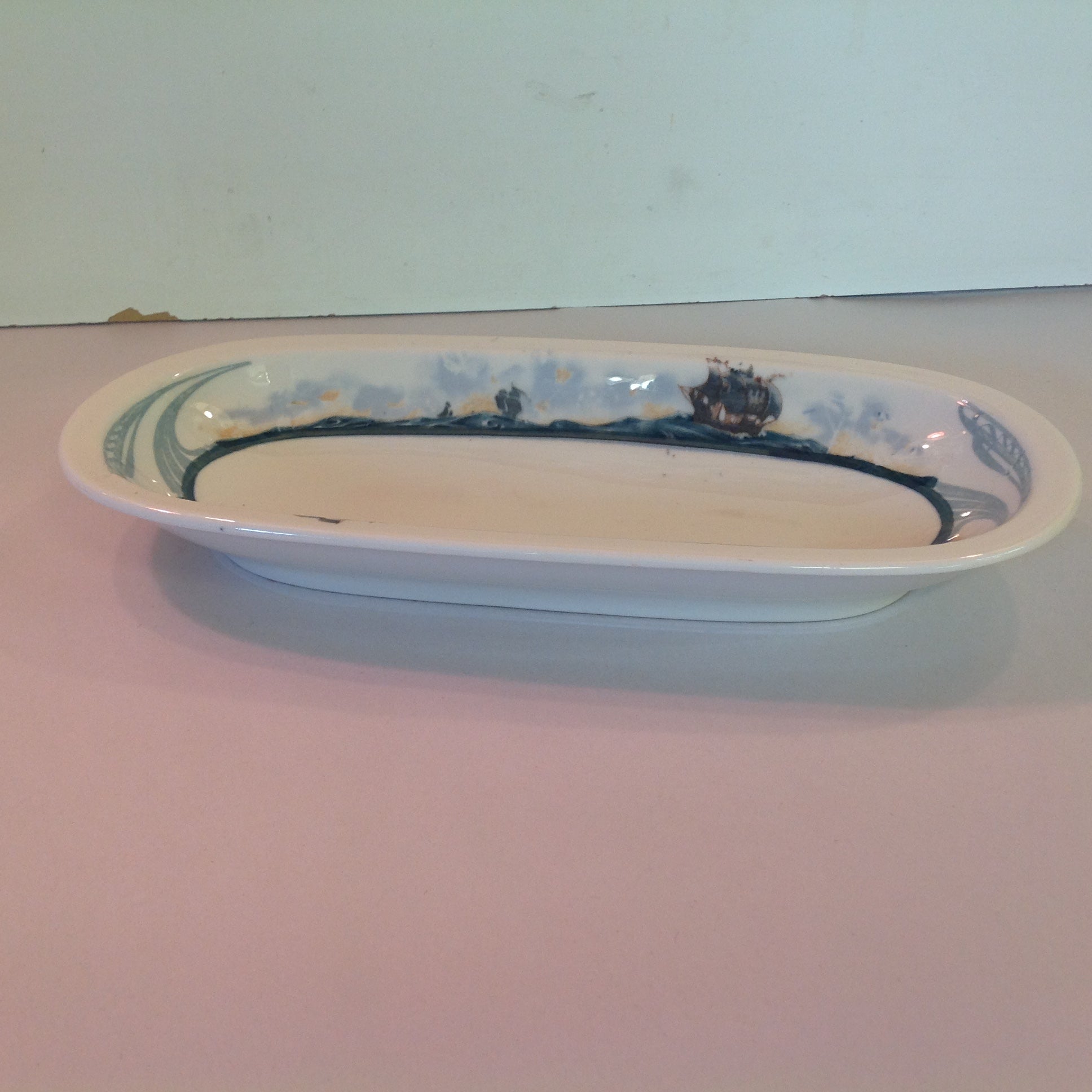 Vintage Detroit Yacht Club Restaurant Ware Sailing Galleon Ship Pattern Celery Dish