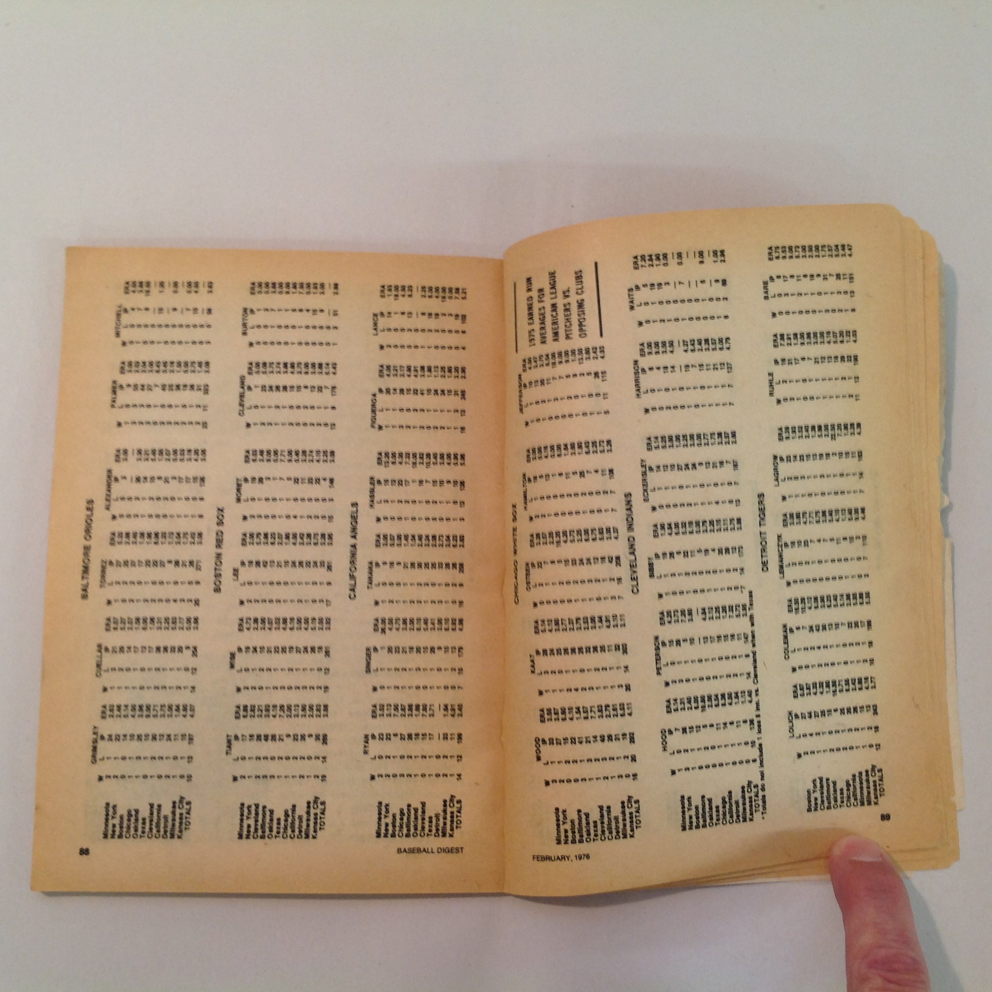 Vintage Feb 1976 Baseball Digest Magazine Exclusive! Pitchers' ERA Vs Opposing Clubs