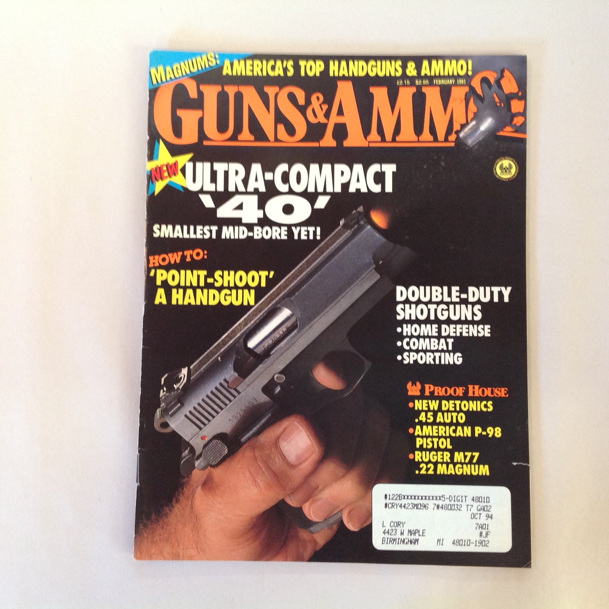 Vintage Feb 1991 Guns & Ammo Magazine Ultra-Compact 40 Point-Shoot A Handgun Double-Duty Shotguns
