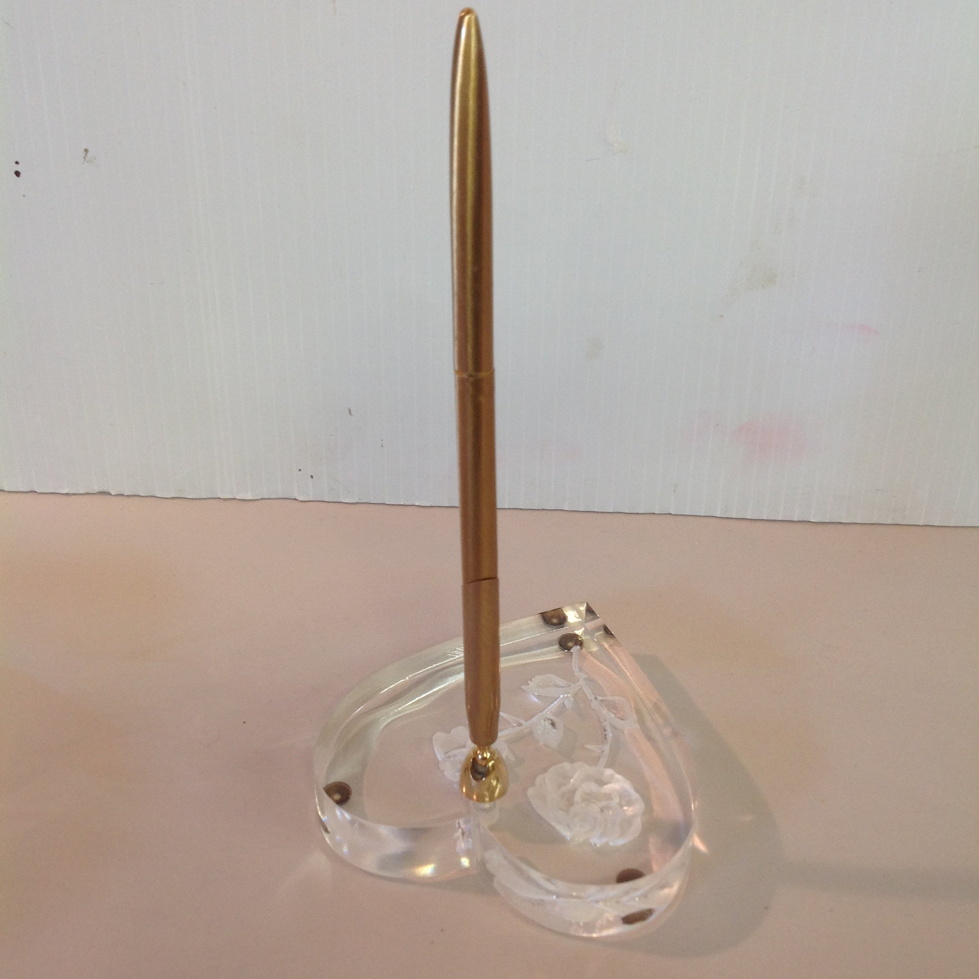 Vintage Hortense B Hewitt Co Elegant Accessories Guest Pen Set Lucite Heart Shaped Rose Wedding Base