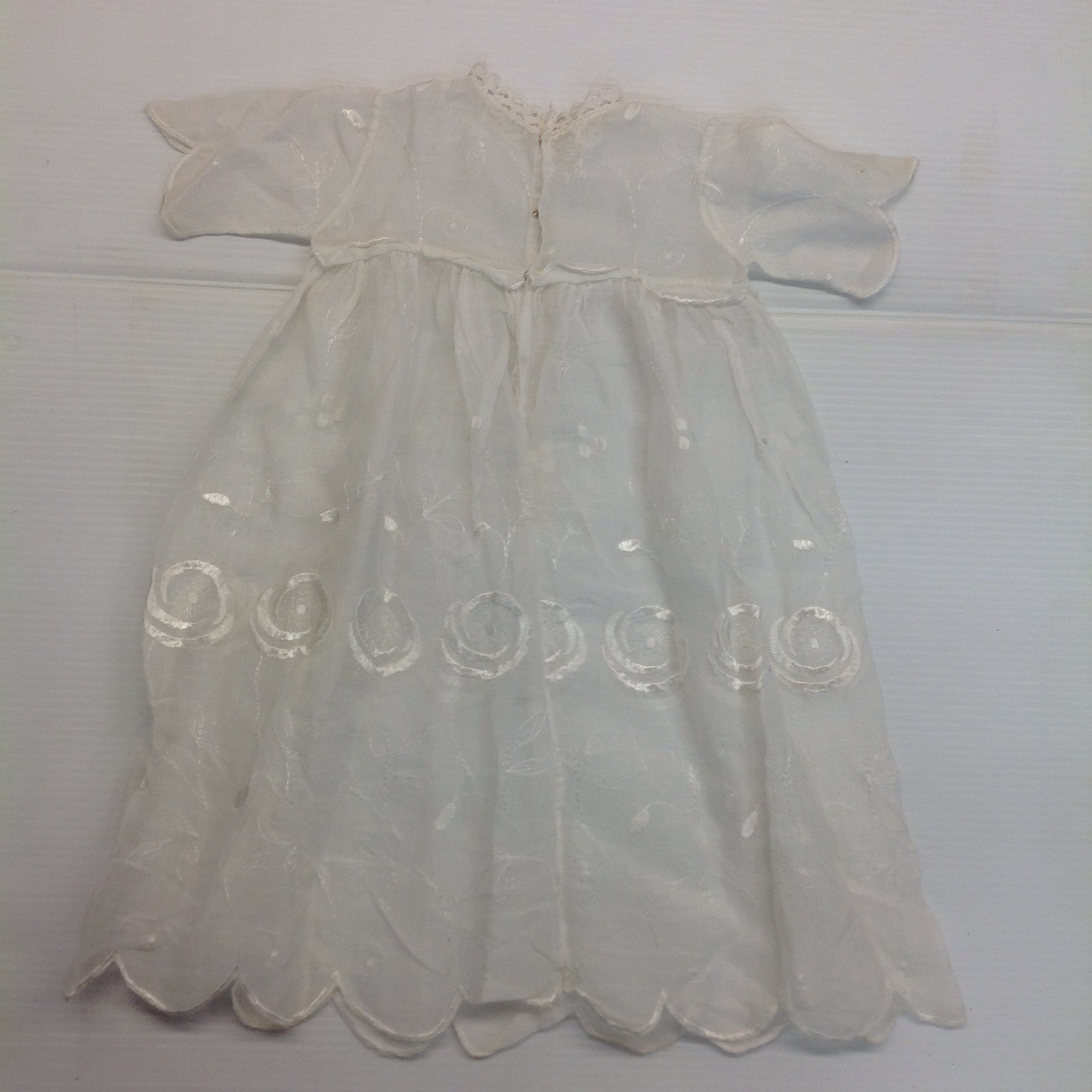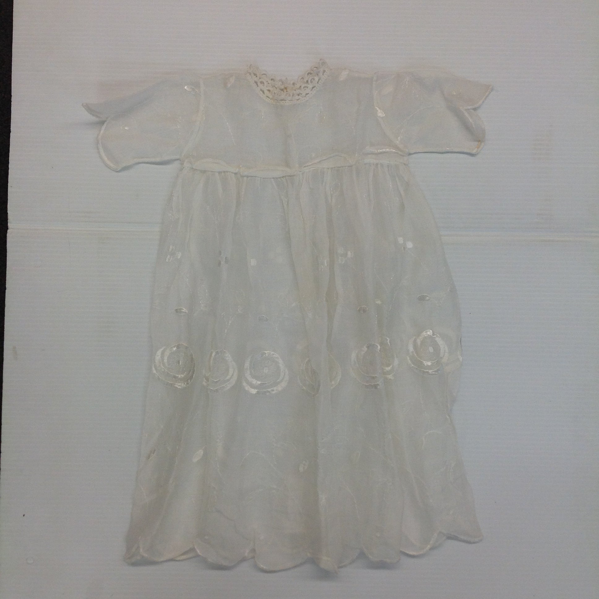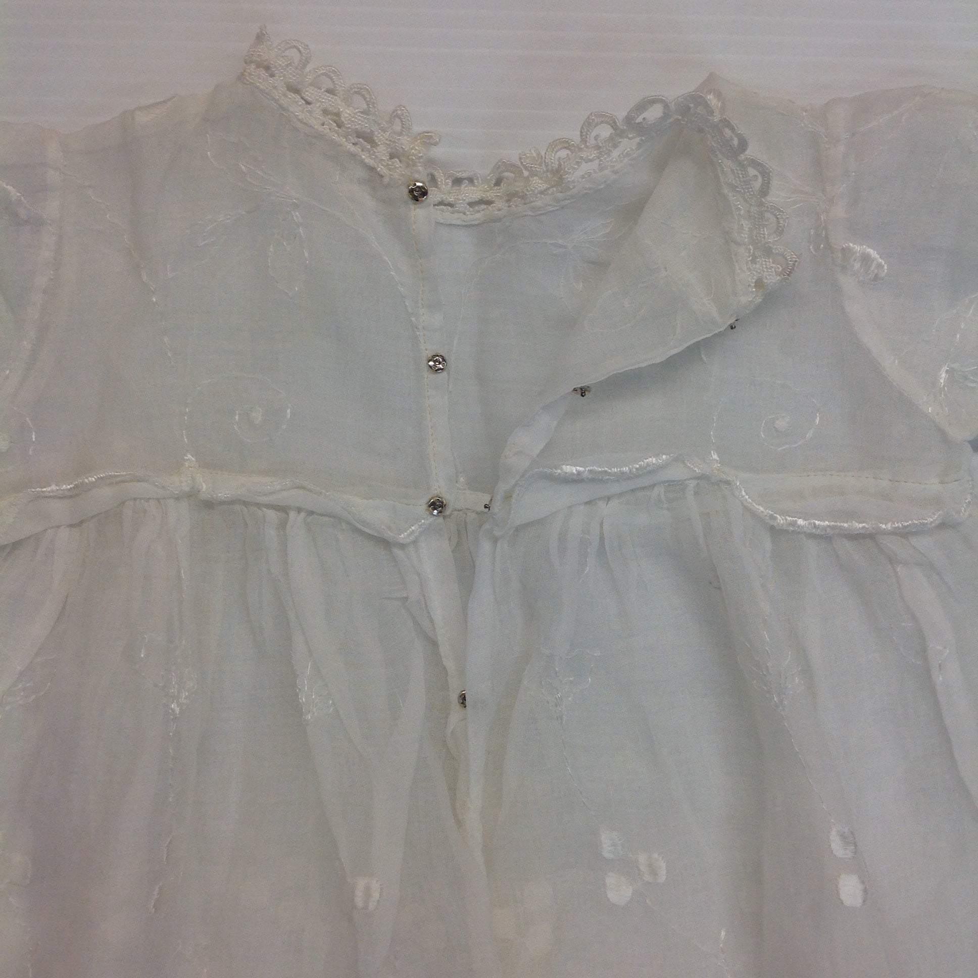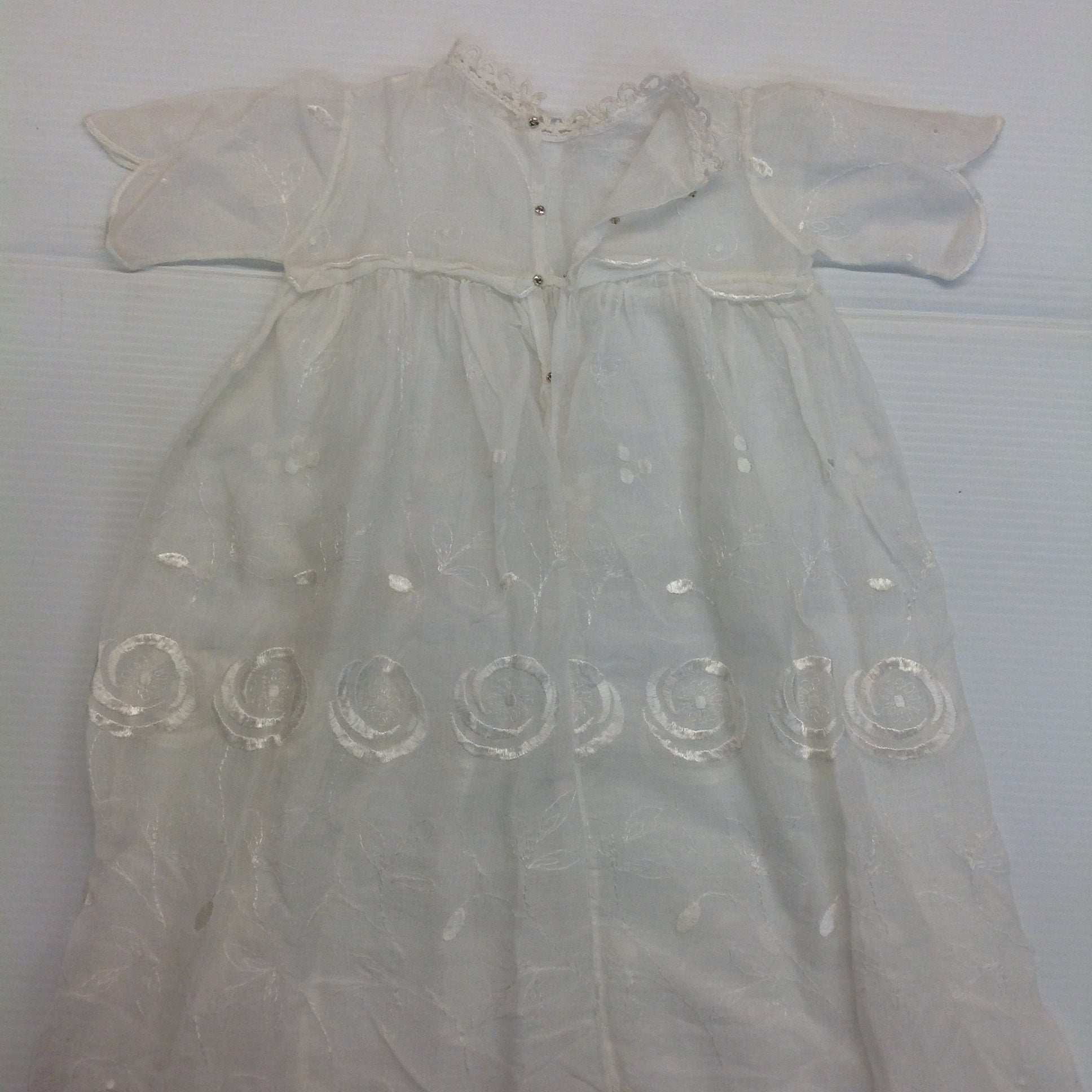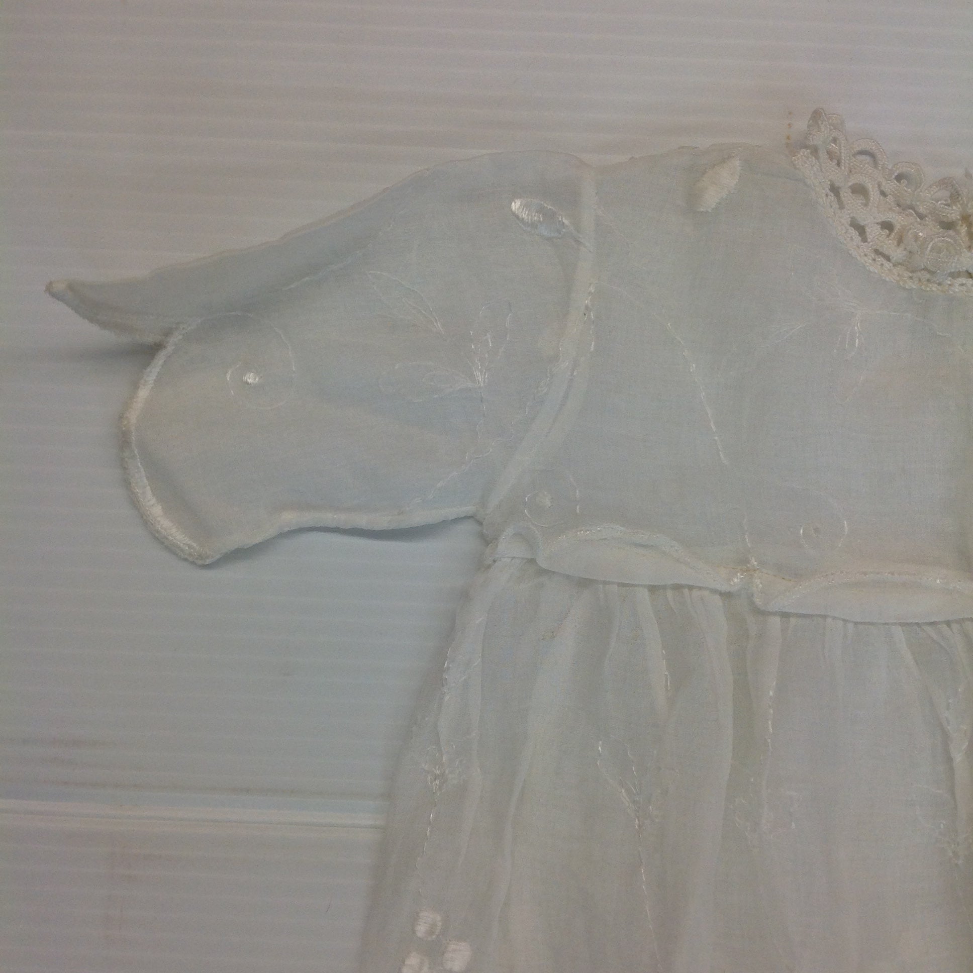 Vintage Infant Sheer White Muslin Floral Embroidered Christening Dress