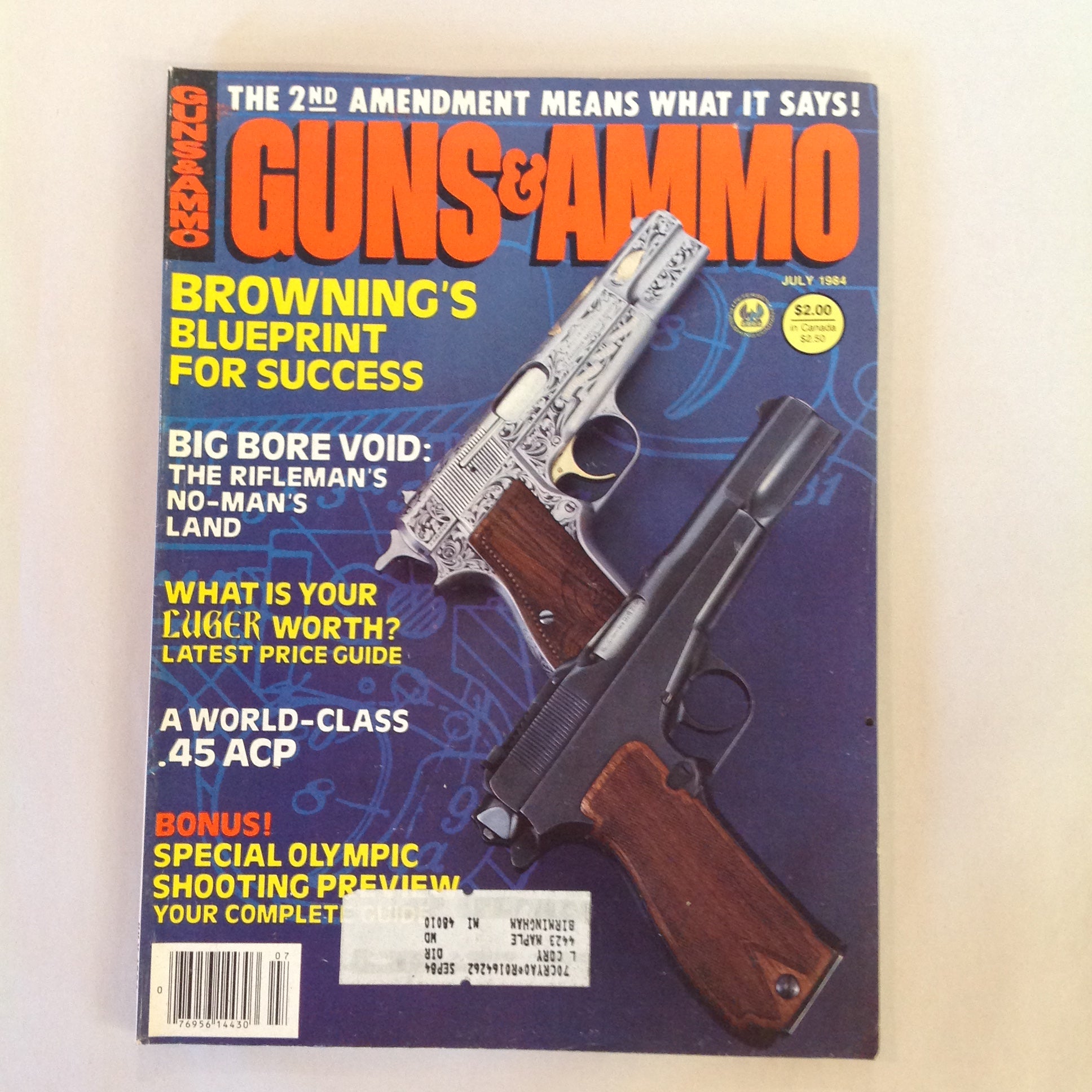 Vintage Jul 1984 Guns & Ammo Magazine Browning's Blueprint Olympic Shooting Preview