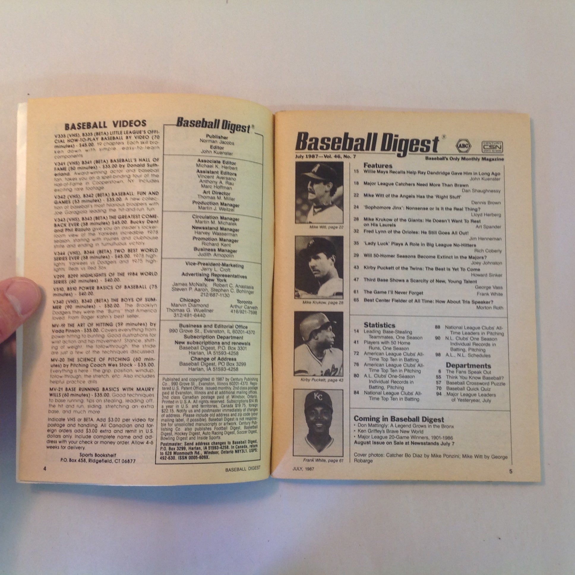 Vintage Jul 1987 Baseball Digest Magazine Catchers Need More than Brawn! Mike Witt of Angels Has the "Right Stuff"