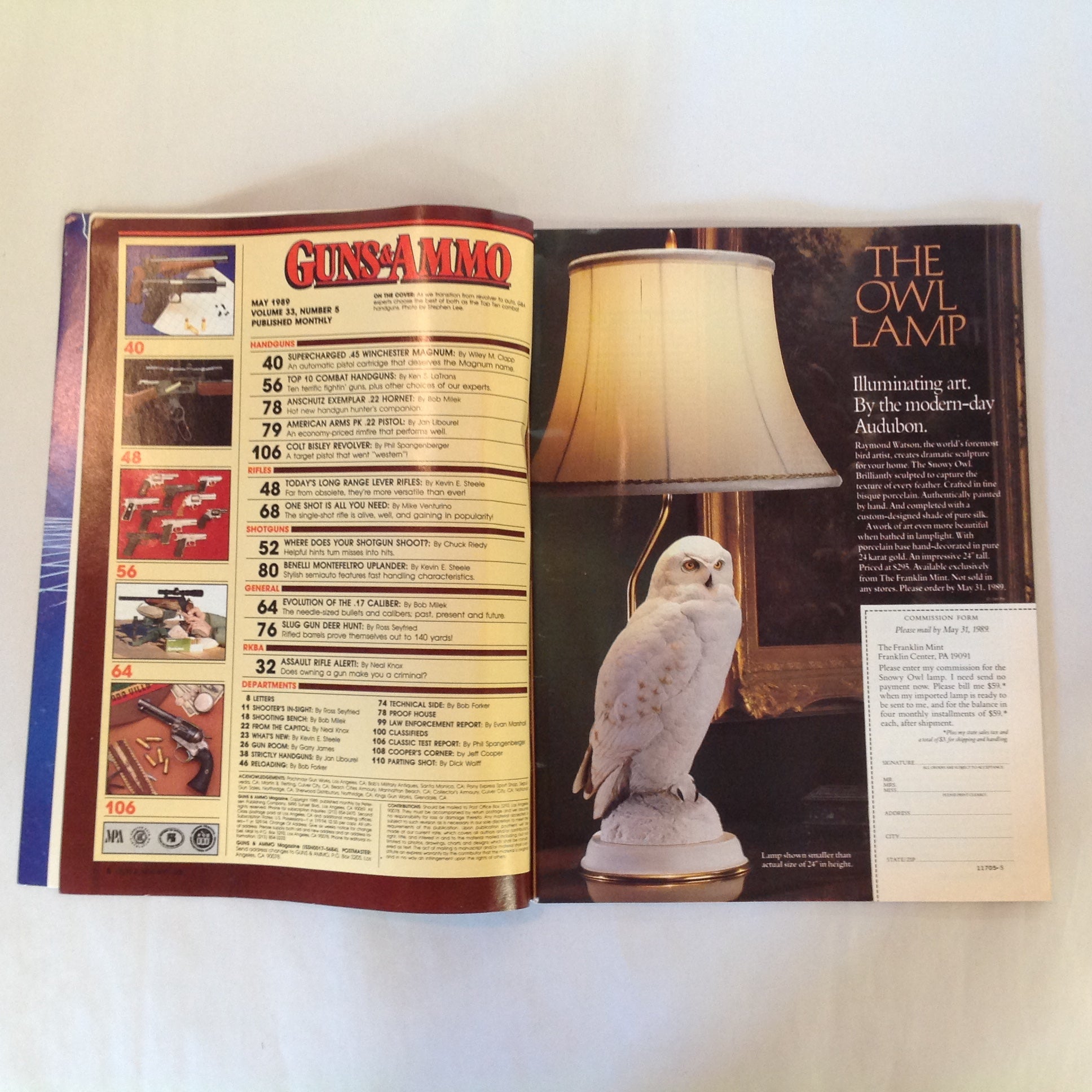 Vintage May 1989 Guns & Ammo Magazine Top 10 Combat Handguns Supercharged .45