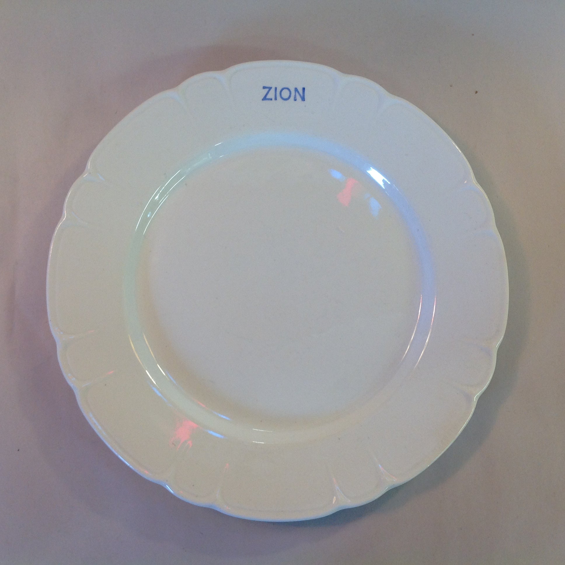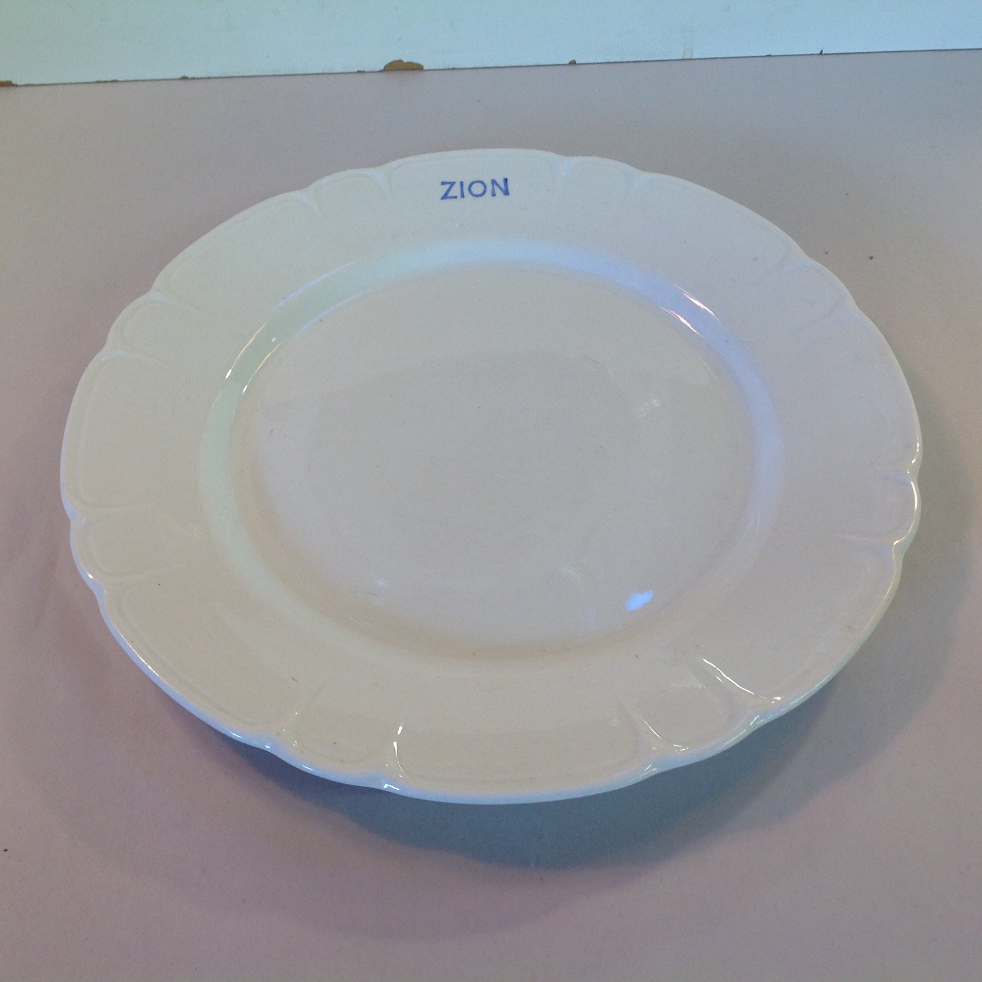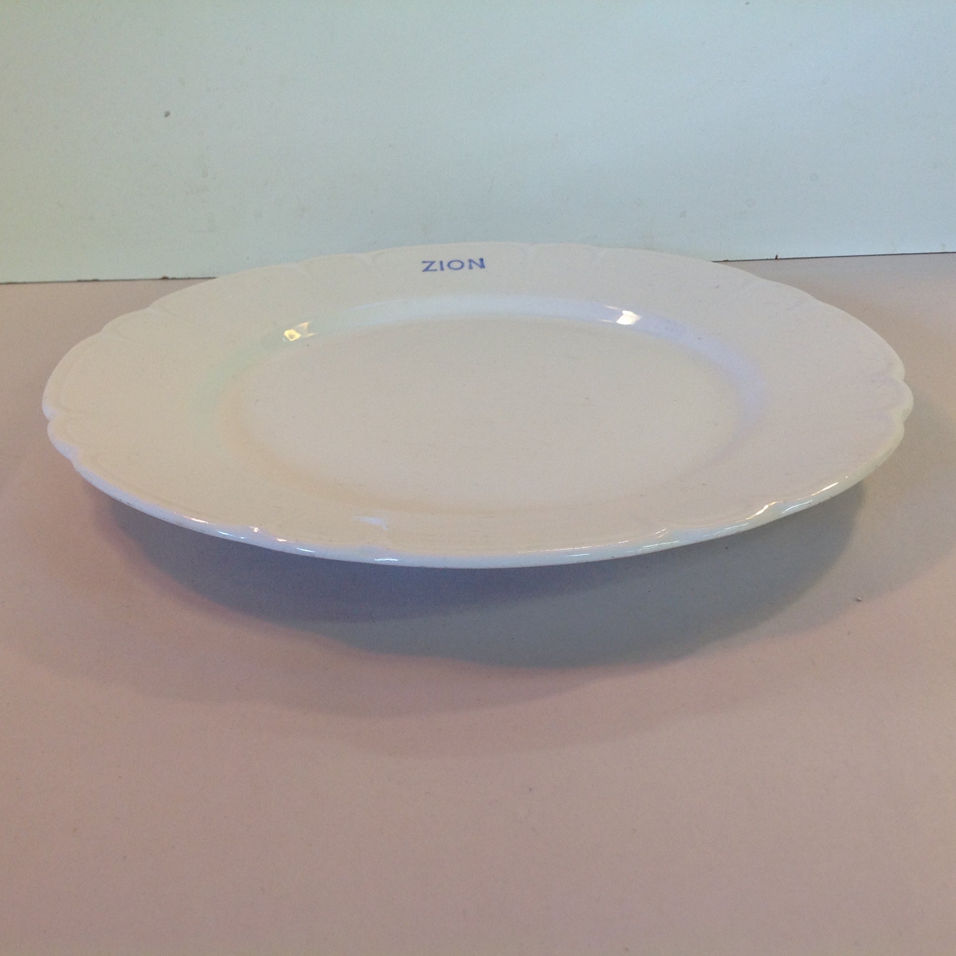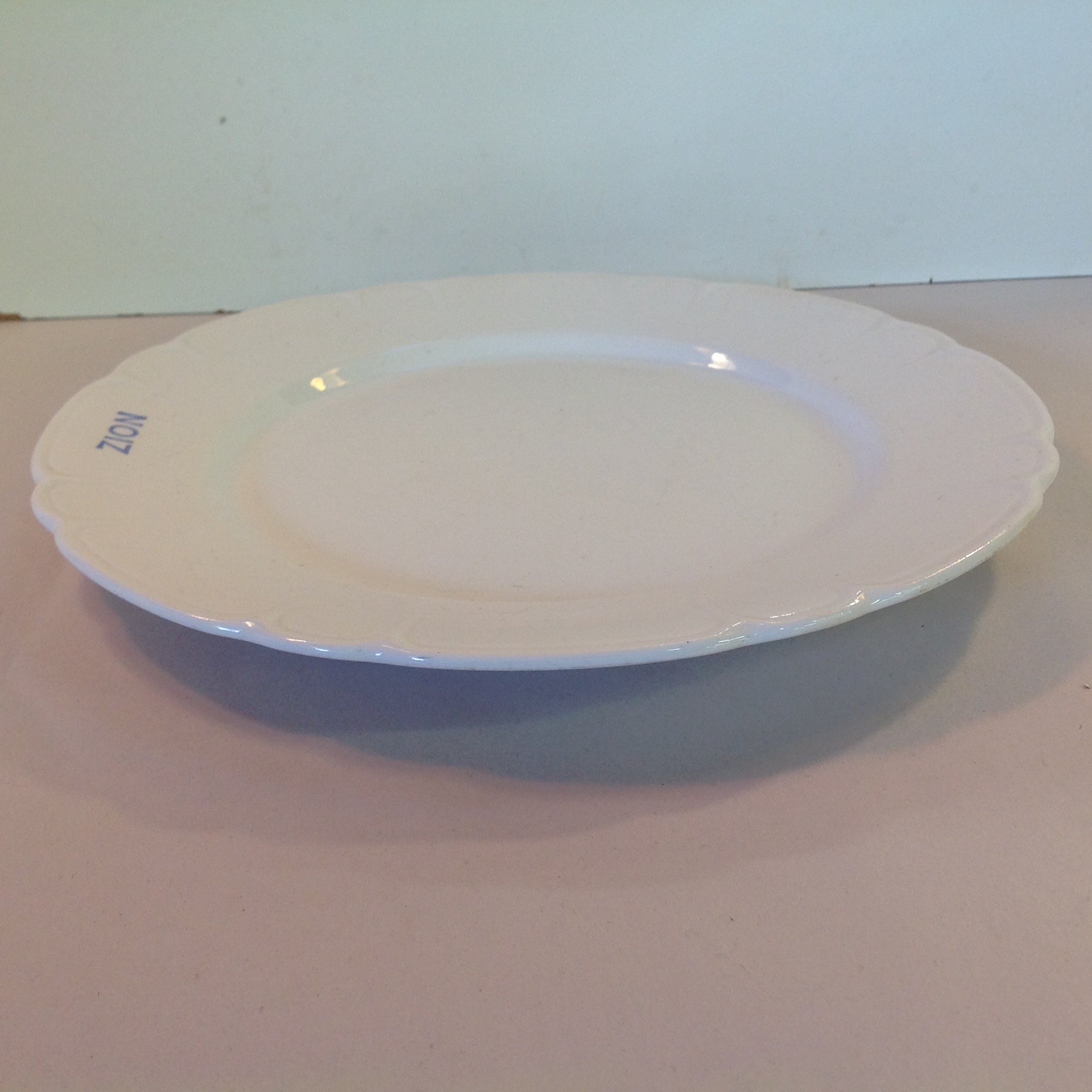 Vintage Mid Century White Porcelain Large Plate Zion Ware Restaurant Coffee Diner