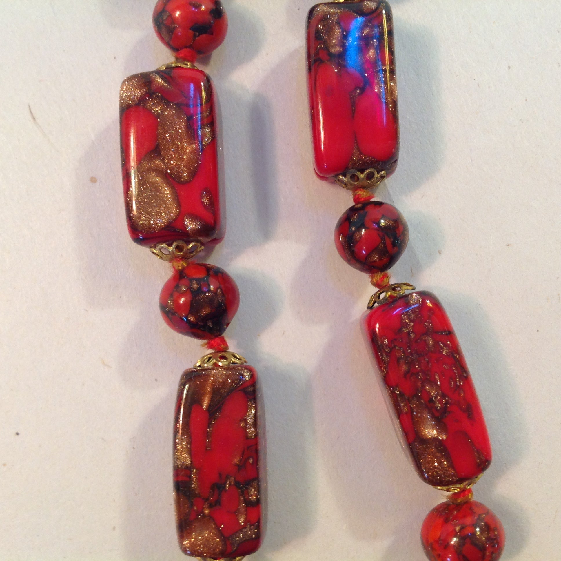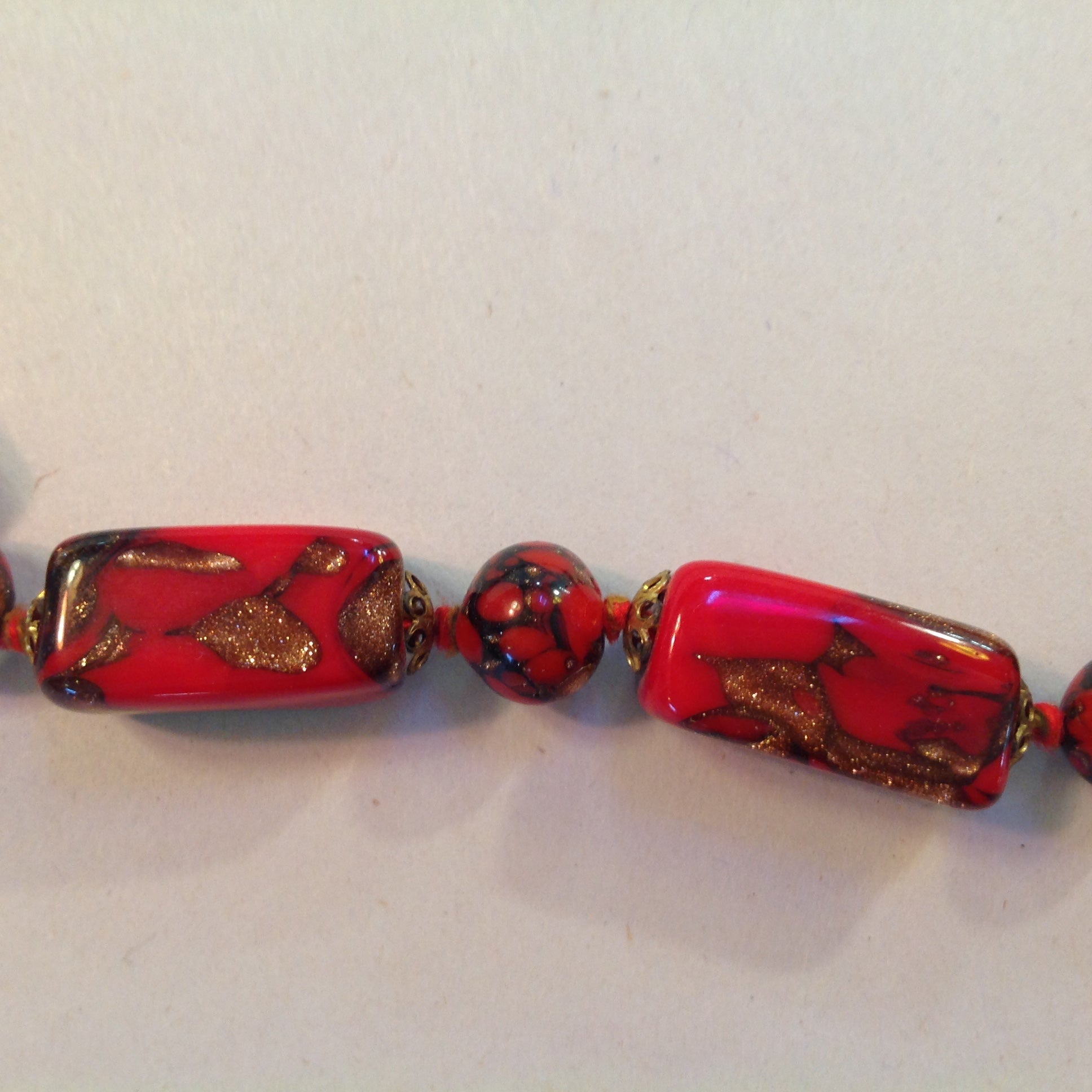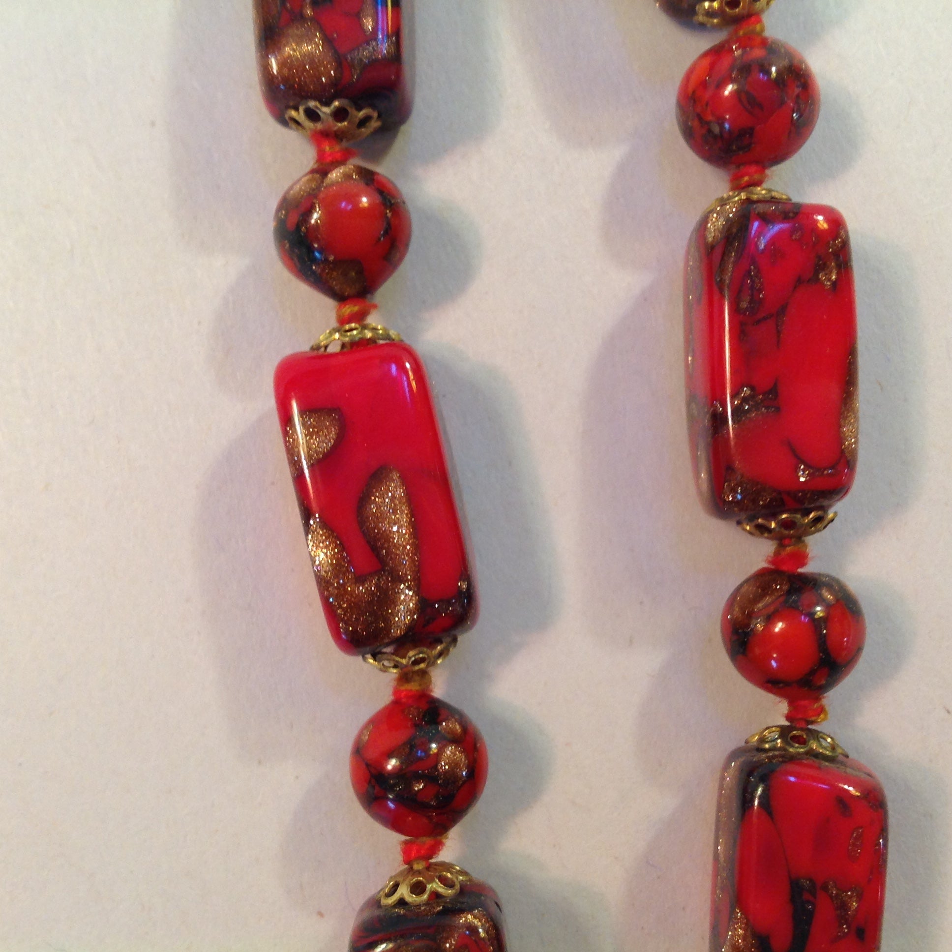 Vintage Murano Venetian Sommerso Glass Goldstone Hand Knotted Necklace