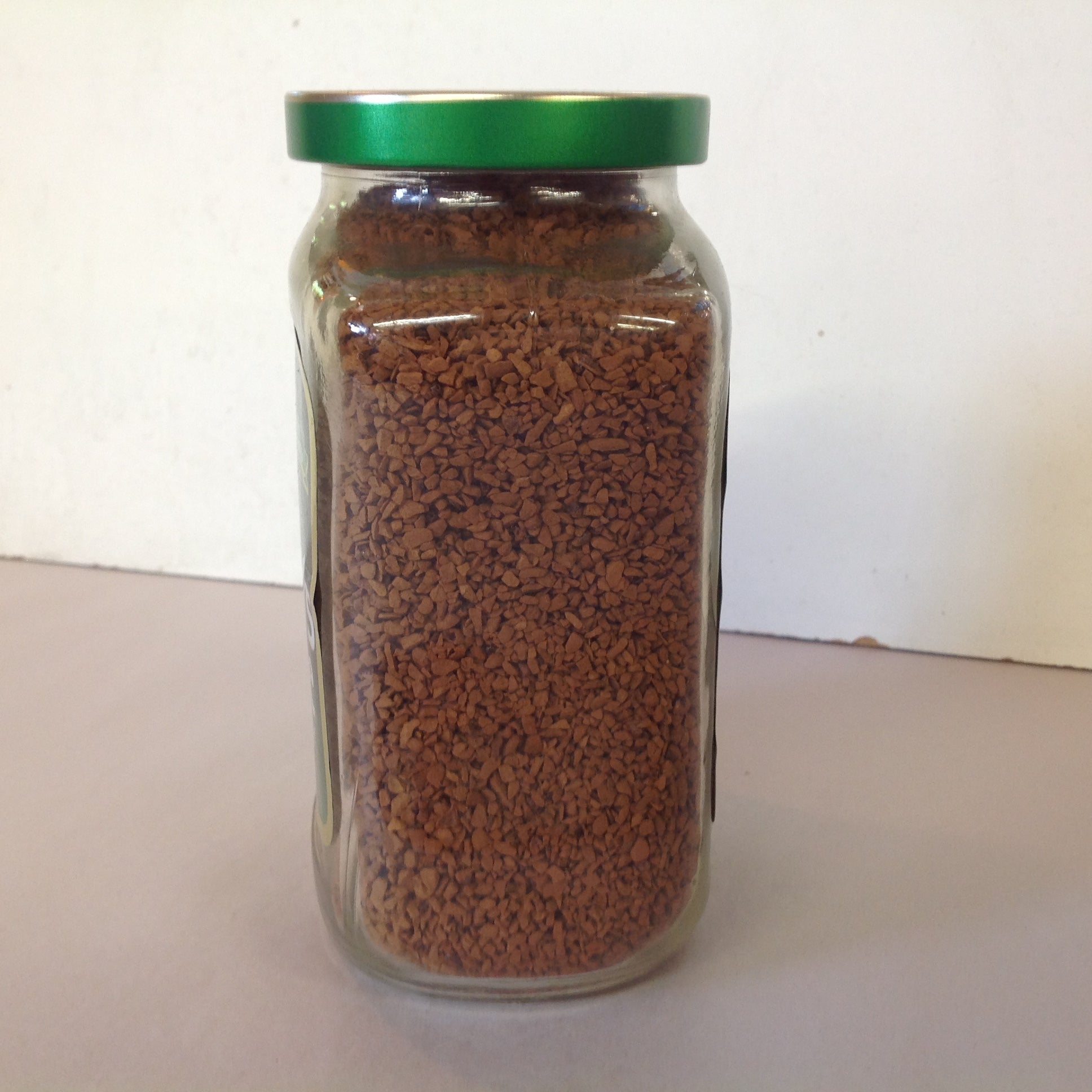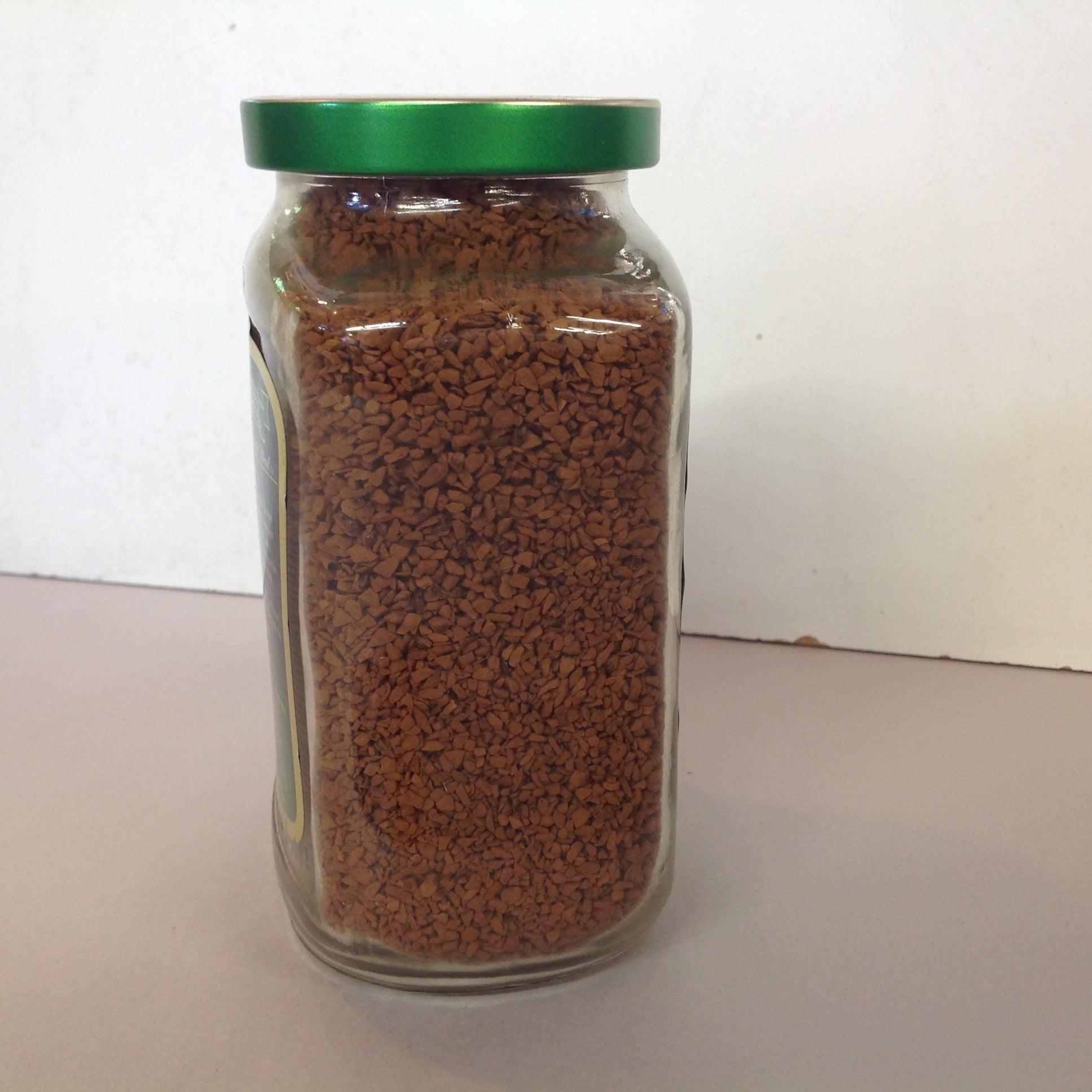 This is a vintage N(ew) O(ld) S(tock) item, in good NOS condition, with little sign of age/wear; the coffee is still in its original packaging, which has not been opened, and shows light rubbing to surface of metal/glass, original price sticker affixed at base, minuscule points of blemish/distress. Overall quality is good; clean, smooth/glossy, with excellent preservation of color/sheen and label graphics still sharp/bright. There are no excessive nicks, chips, dents, divots, scrapes, scratches, scuffs, cracks, breaks, stains, residue or repairs. The jar measures approx 6" x 2.5" x 4", with a 3" round lid.