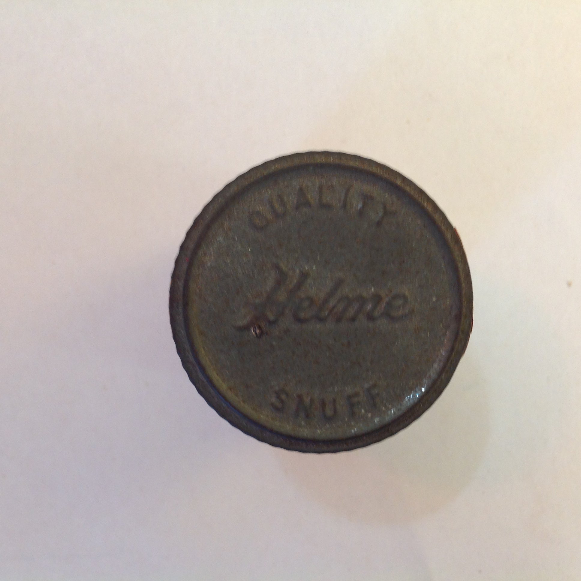 This is a vintage N(ew) O(ld) S(tock) item, in good NOS condition, with some signs of age/wear; there is light rubbing/scuffing to surface of tin, light fading/smudging to paper decal, wear along/about base and lid, patterns of tarnish/rusting to lid and base, minor points of blemish/distress. Overall quality is good; smooth/clean, with good preservation of color/sheen and graphics still sharp/clear. There are no excessive nicks, chips, scrapes, scratches, scuffs, cracks, breaks, stains, residue or repairs. The tin is labeled as 1.15oz and measures approx 2.25" tall, with a 1.75" lid and base.