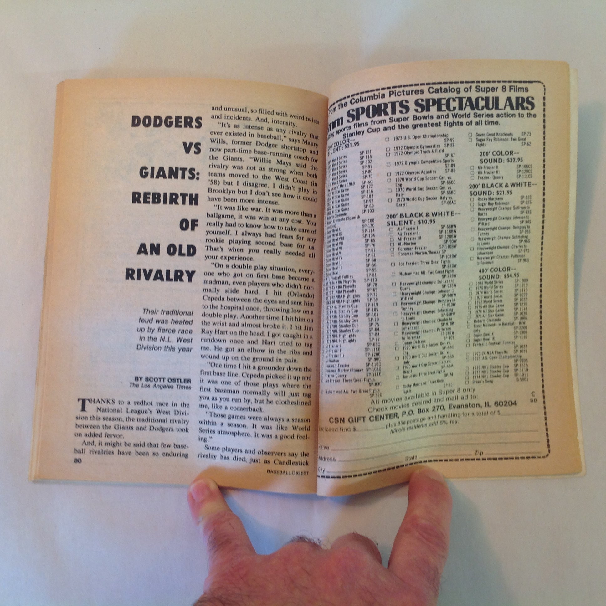 This is a vintage used item, in good used condition, with light signs of age/wear; covers bear mild rubbing, light edgewear and little associated corner wear, some wear along/about spine, address label affixed at front left, mild fading, minsucule points of blemish/distress. Interior newsprint pages show clean/smooth, creamy-white, with sharp black typeset and good preservation of B&W photographs/images/adverts; light wear/tanning. Staple binding remains intact/secure and square-to-hand. There are no excessive nicks, chips, rips, tears, perforations, stains, residue or repairs.
