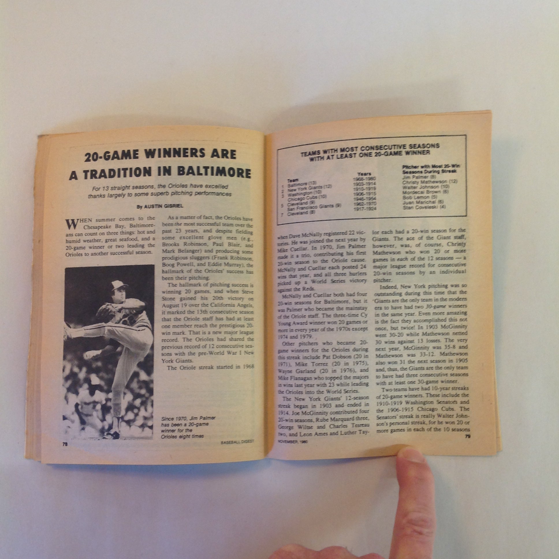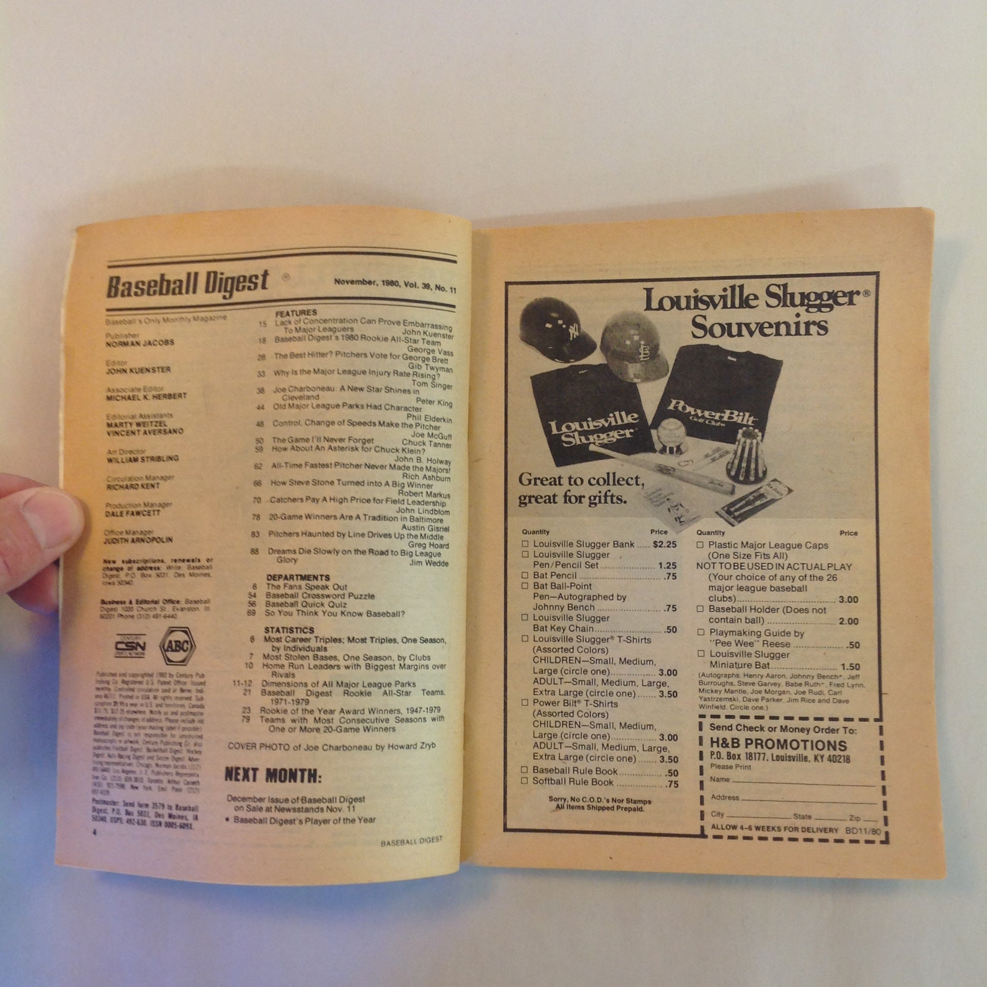 Vintage Nov 1980 Baseball Digest Magazine Joe Charboneau: A New Star Twinkles in Cleveland