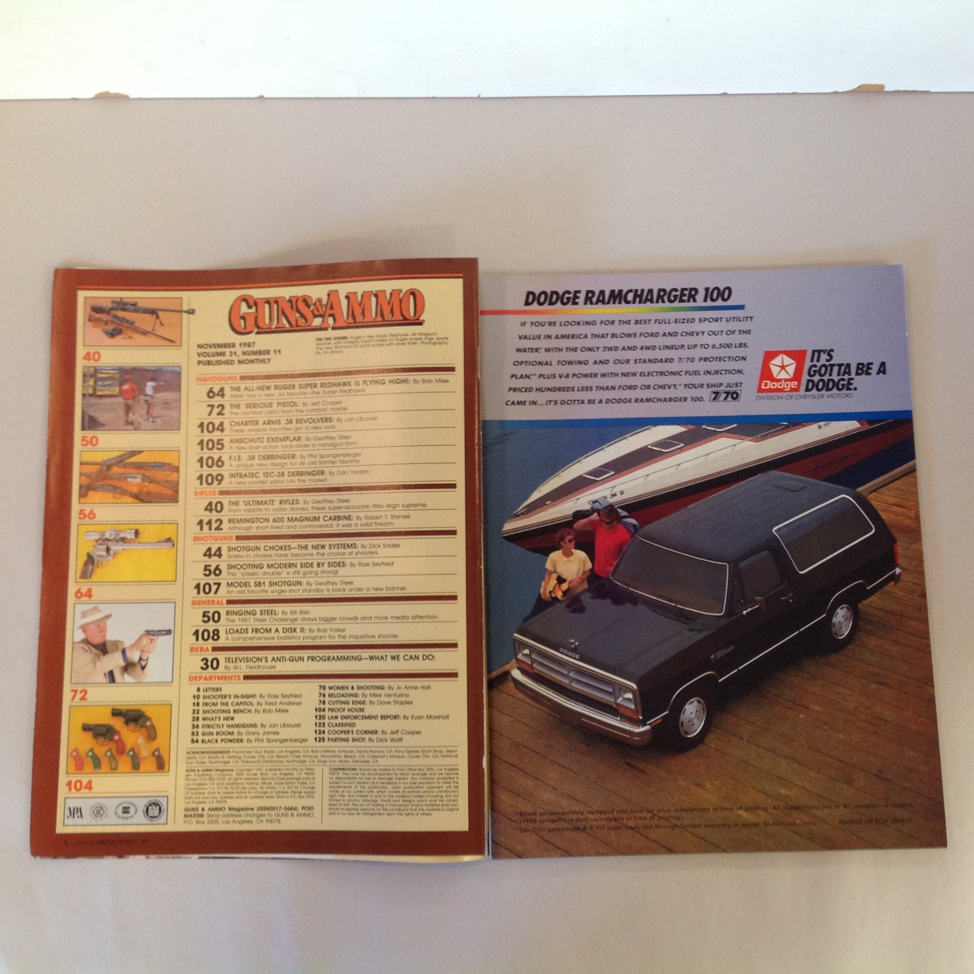 Vintage Nov 1987 Guns & Ammo Magazine All New Ruger Super Redhawk Ultimate Rifles Side By Side Shotguns