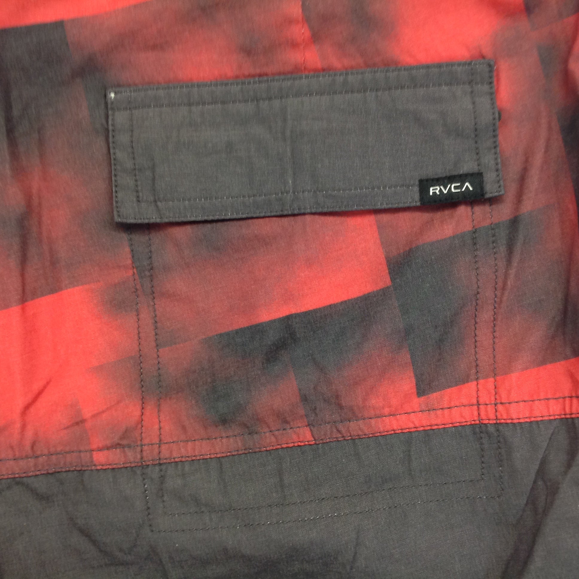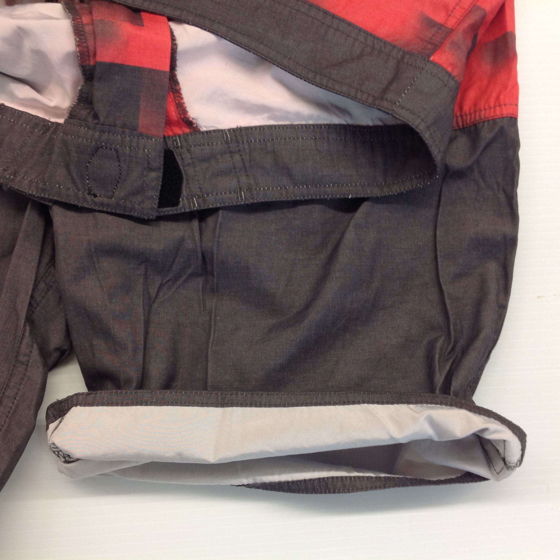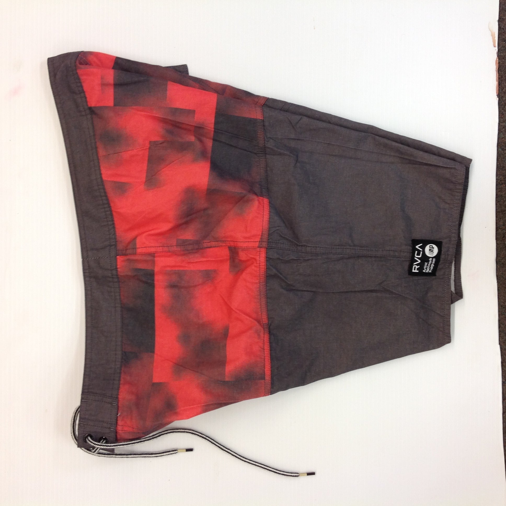 These are used items, in good used condition, with little sign of age/wear; there is mild rubbing to surface of fabric. Overall fabric quality is good, smooth/clean, soft/supple, with excellent preservation of color/sheen and manufacturer tags still sharp/bright. There are no excessive rips, tears, perforations, loose threads, stains, residue or repairs. The shorts are labelled as a Men's 34 Waist, of 55% polyester and 35% cotton, 10% nylon and made in China. Overall board shorts measurements are approx: Waist: 36", Inseam: 9", Overall length: 19.5".