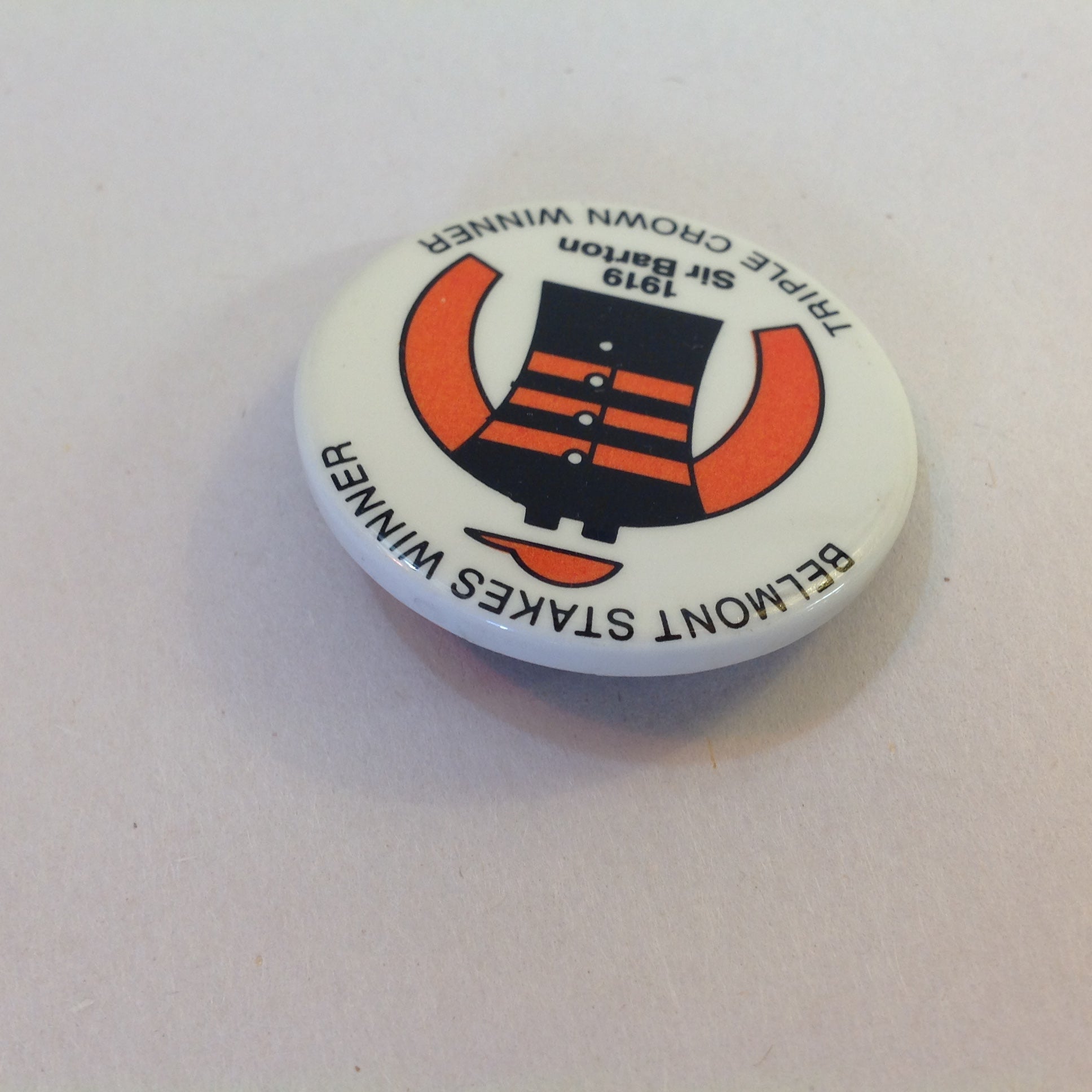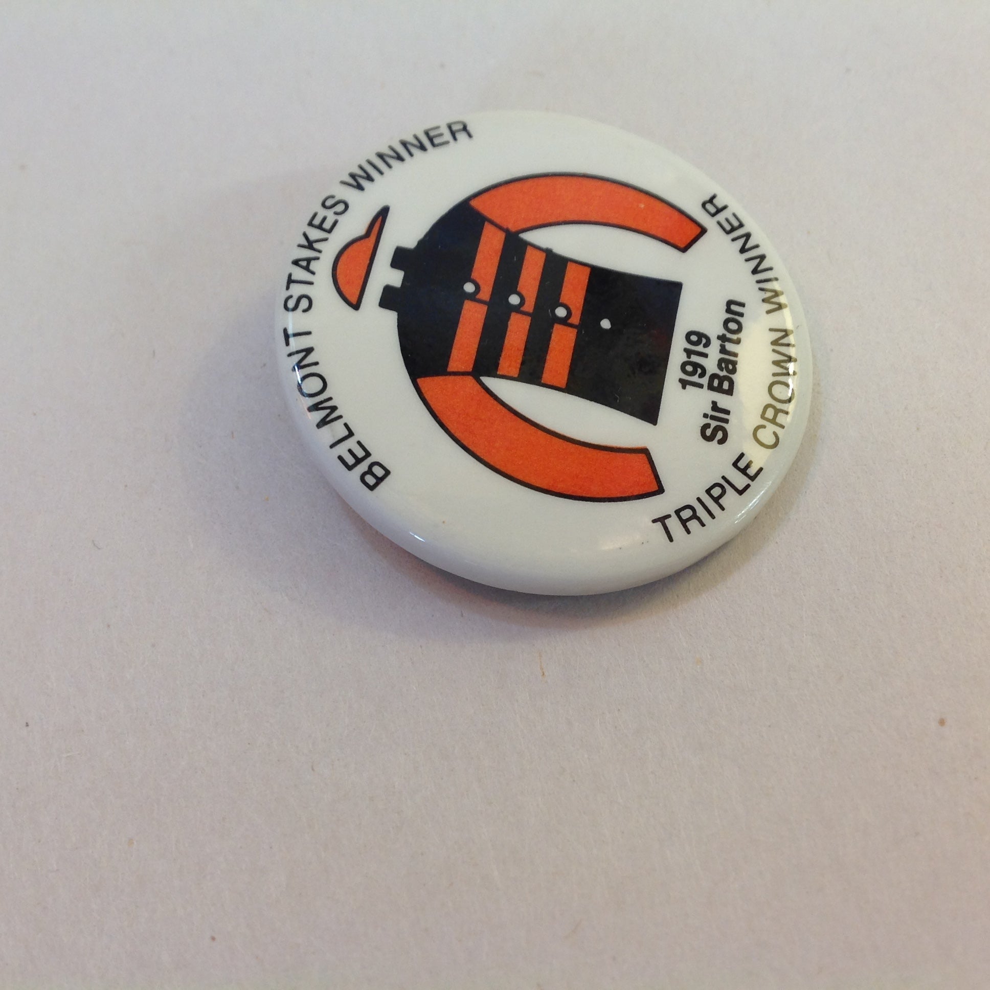 Vintage Souvenir Pinback Belmont Stakes Triple Crown Winner 1919 Sir Barton Jockey Gear