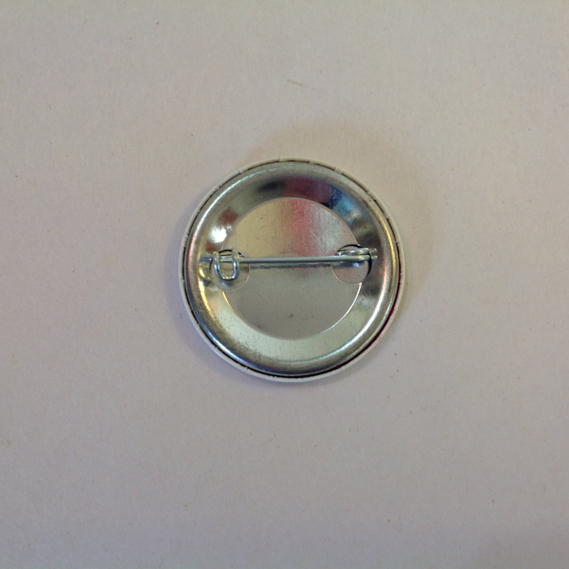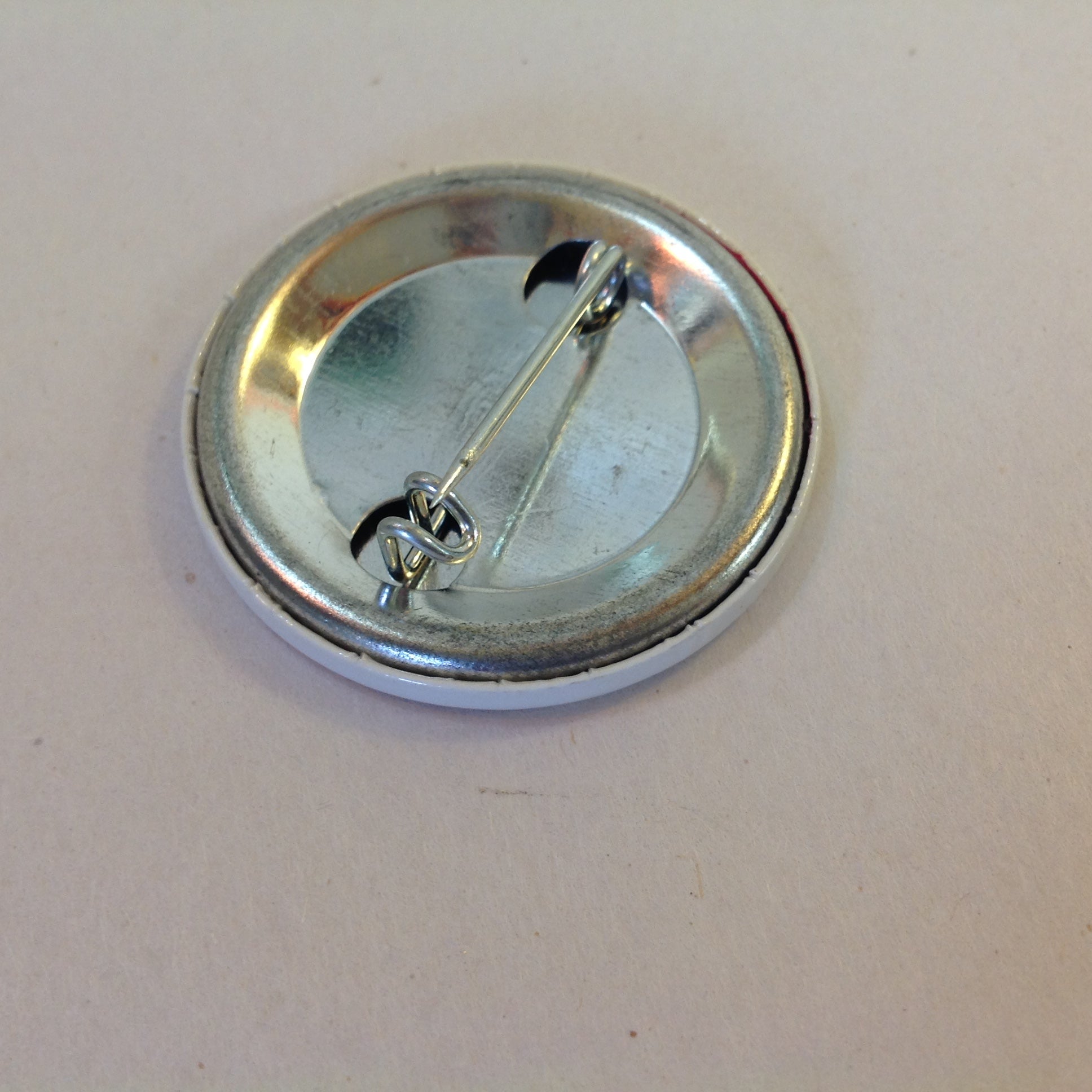 This is a vintage used item, in good used condition, with little sign of age/wear; there is mild rubbing to surface of pinback, light wear at rear. Overall quality is good; smooth/glossy, with excellent preservation of color/sheen and graphics still sharp/clear; closure pin remains in good working order. There are no excessive nicks, chips, dents, divots, scrapes, scratches, scuffs, cracks, breaks, stains, residue or repairs. The pinback measures approx 1.5" round.