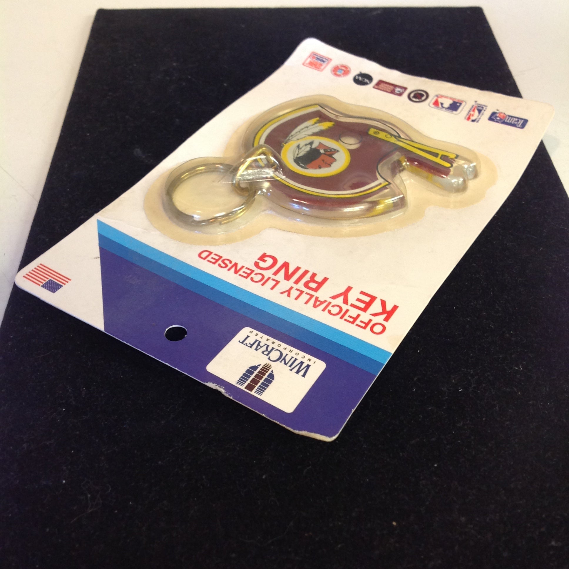 A vintage key ring from the Wincraft line of licensed products, this item is a used item, in good used condition, with little sign of age/wear. The key ring is still in its original packaging, which has not been opened. A vintage keepsake from the NFL team before its original name was retired; for the collector, fan or enthusiast.
