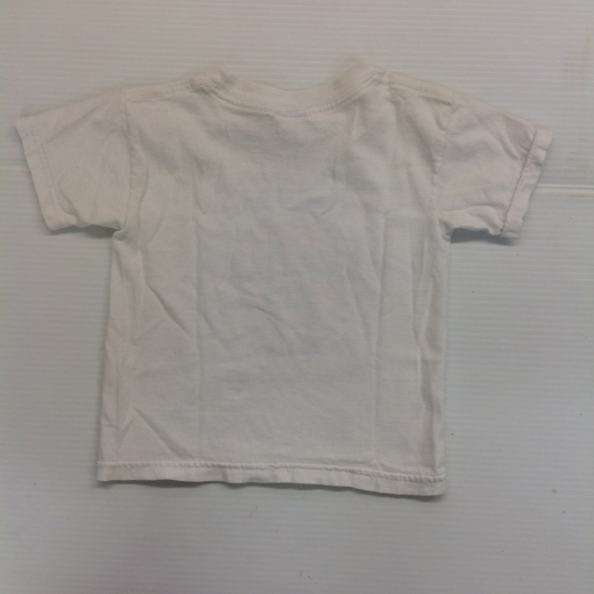 This is a vintage used item, in good used condition, with light signs of age/wear; there is mild rubbing to surface of fabric, light wear along/about hem/cuffs, faint points of blemish at rear left shoulder and above hem, light wear to graphics, manufacturer tag has been removed. Overall fabric (cotton or polycotton) quality is good; clean/smooth, soft/supple, with good preservation of color/sheen and graphics still bright/bold. There are no excessive nicks, rips, tears, perforations, stains, residue or repairs. The shirt is untagged, overall measurements are approx: Shoulder-to-Shoulder: 11.5", Shoulder-to-Sleeve: 3.75", Chest: 24" Overall length: 13".