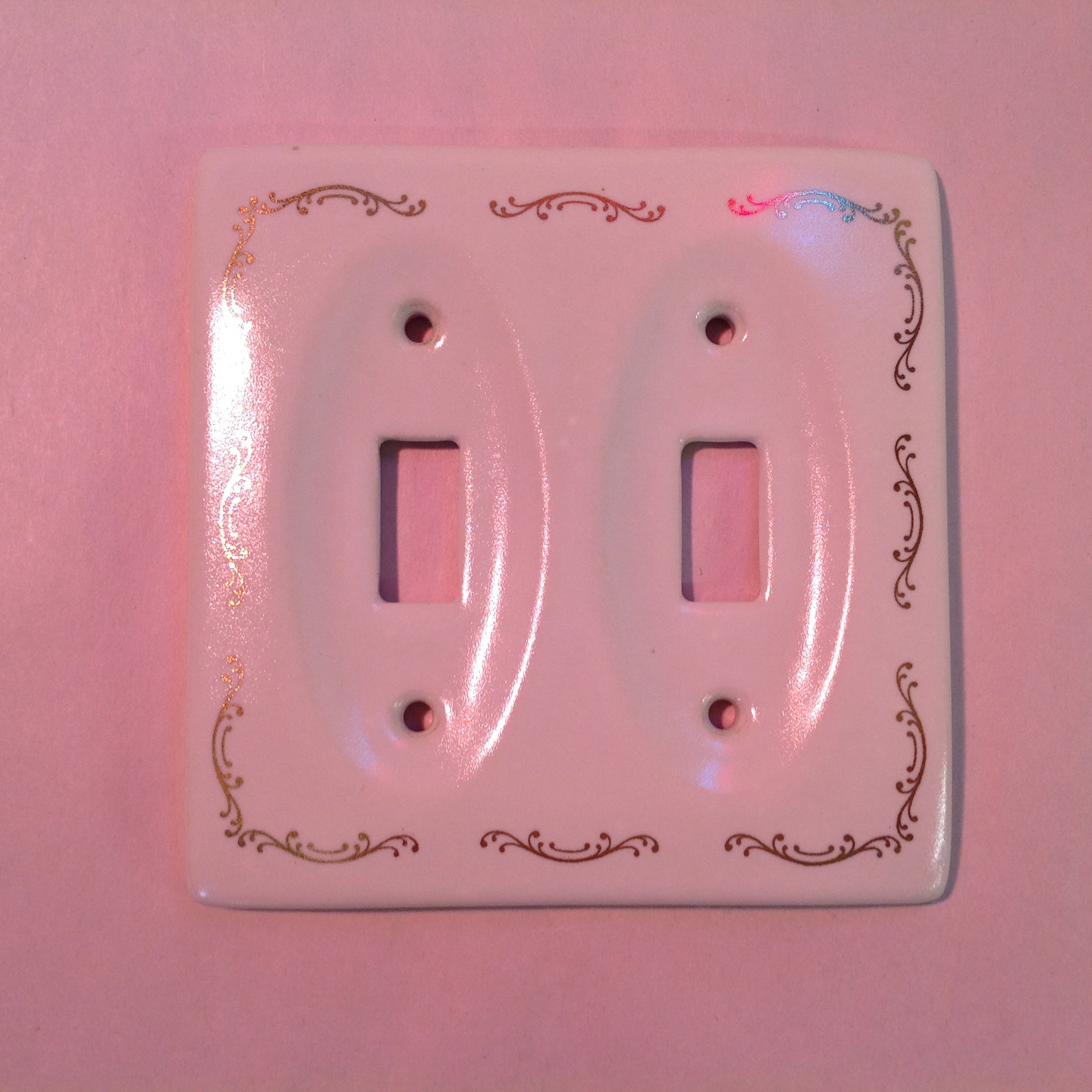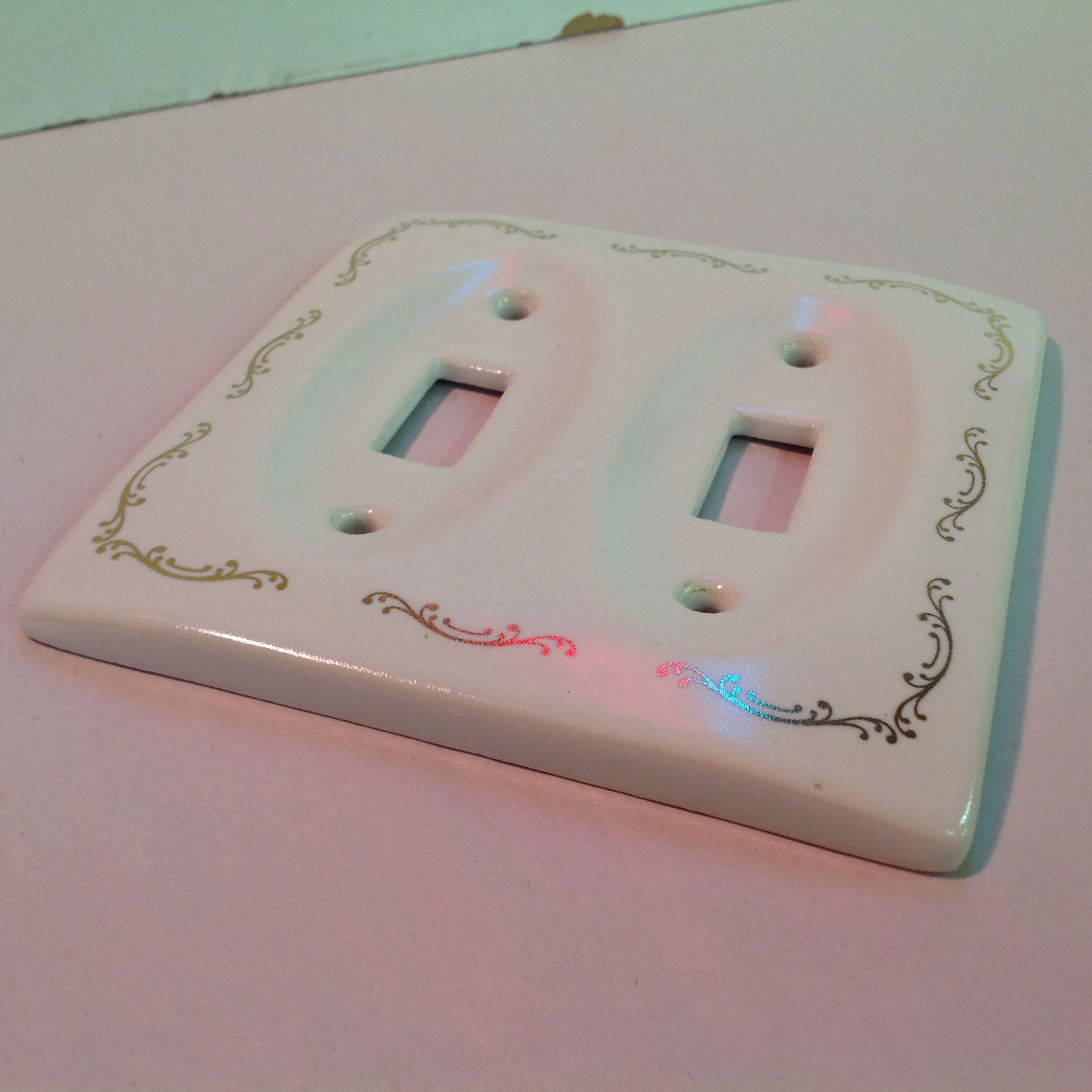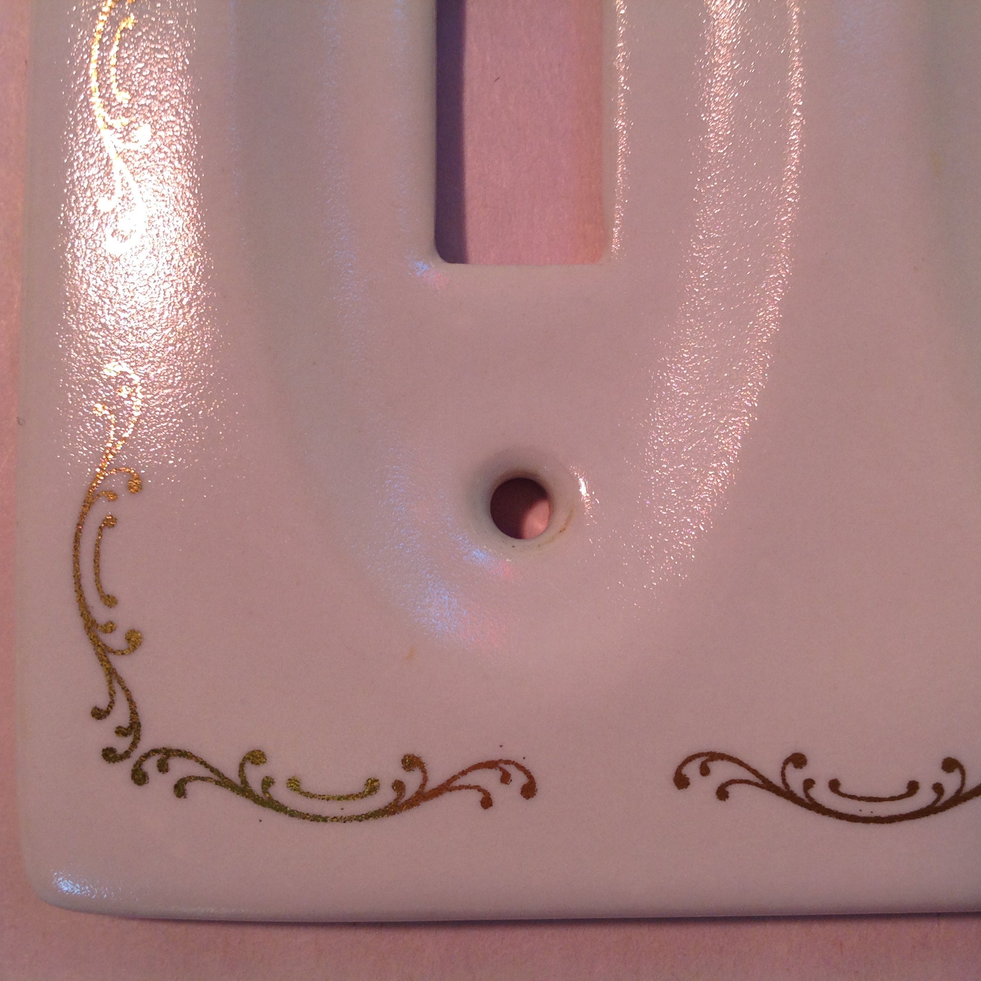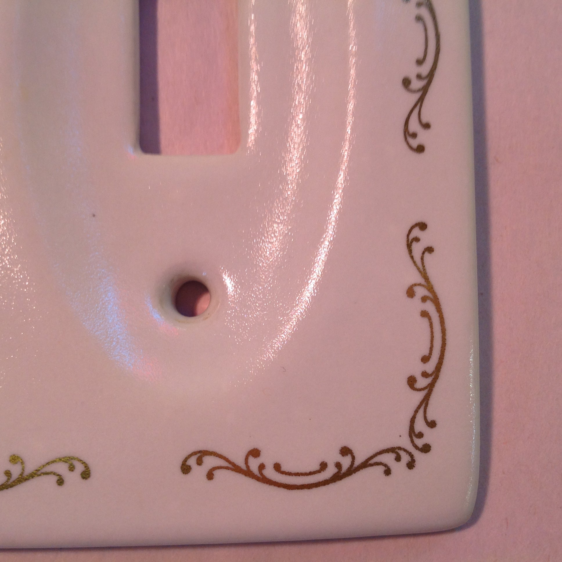 Vintage Lenape American Ceramics Ceramic Double Switchplate White Gold Filigree Hudson's Detroit