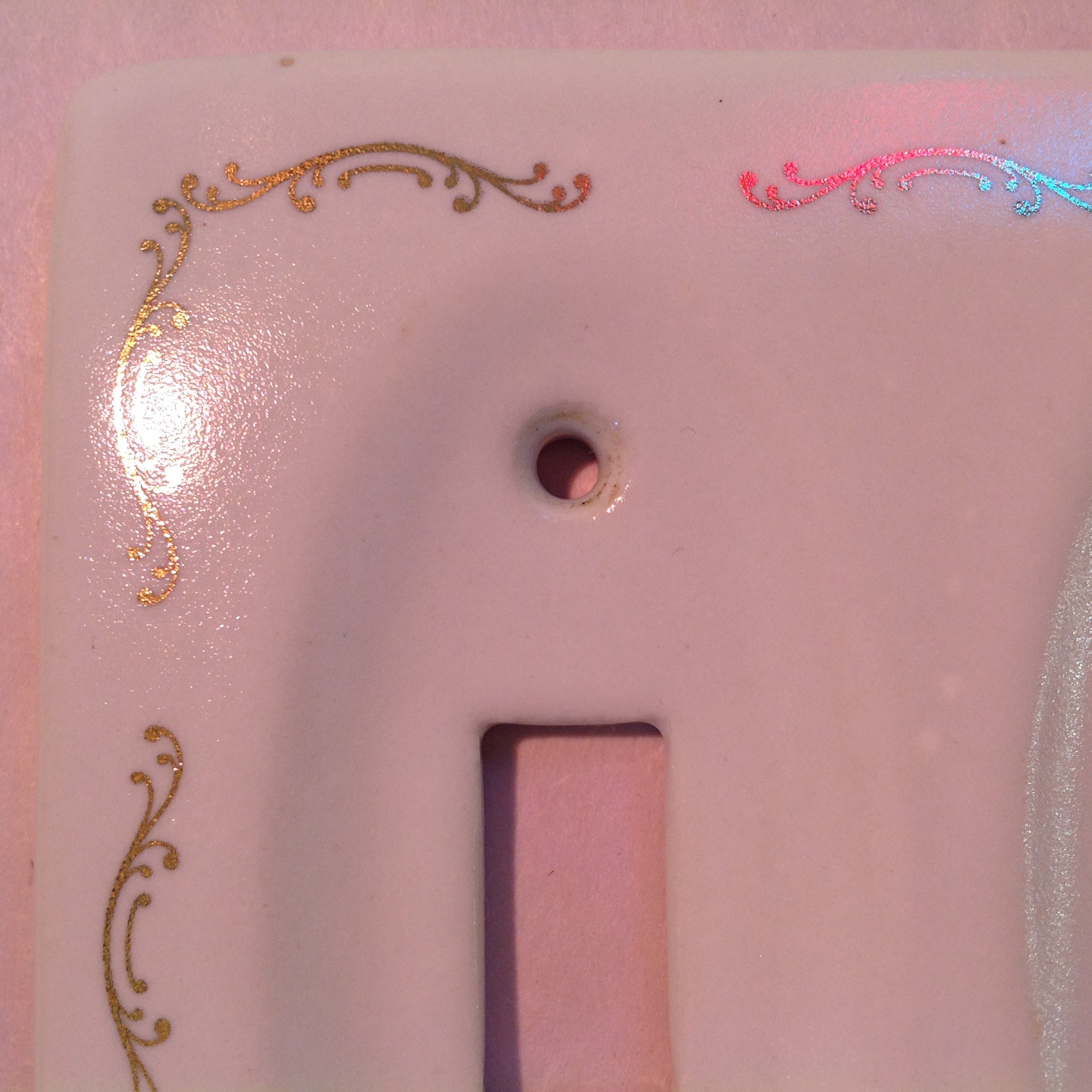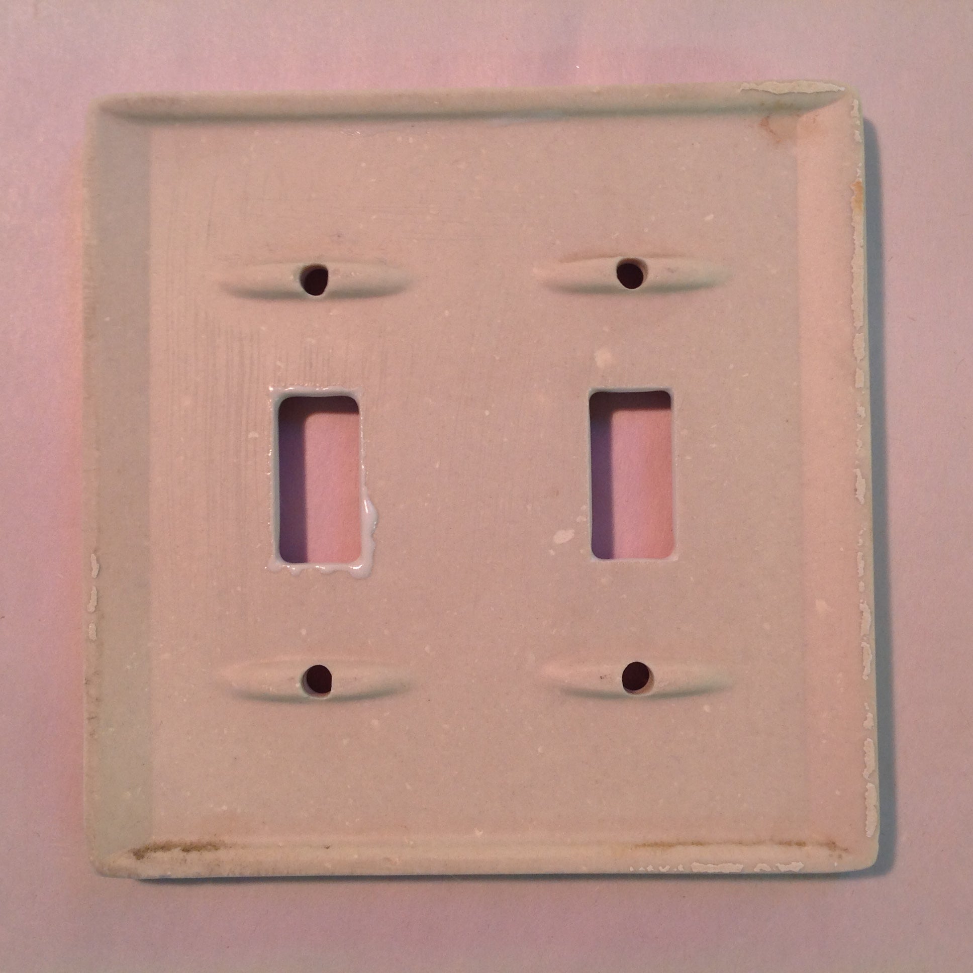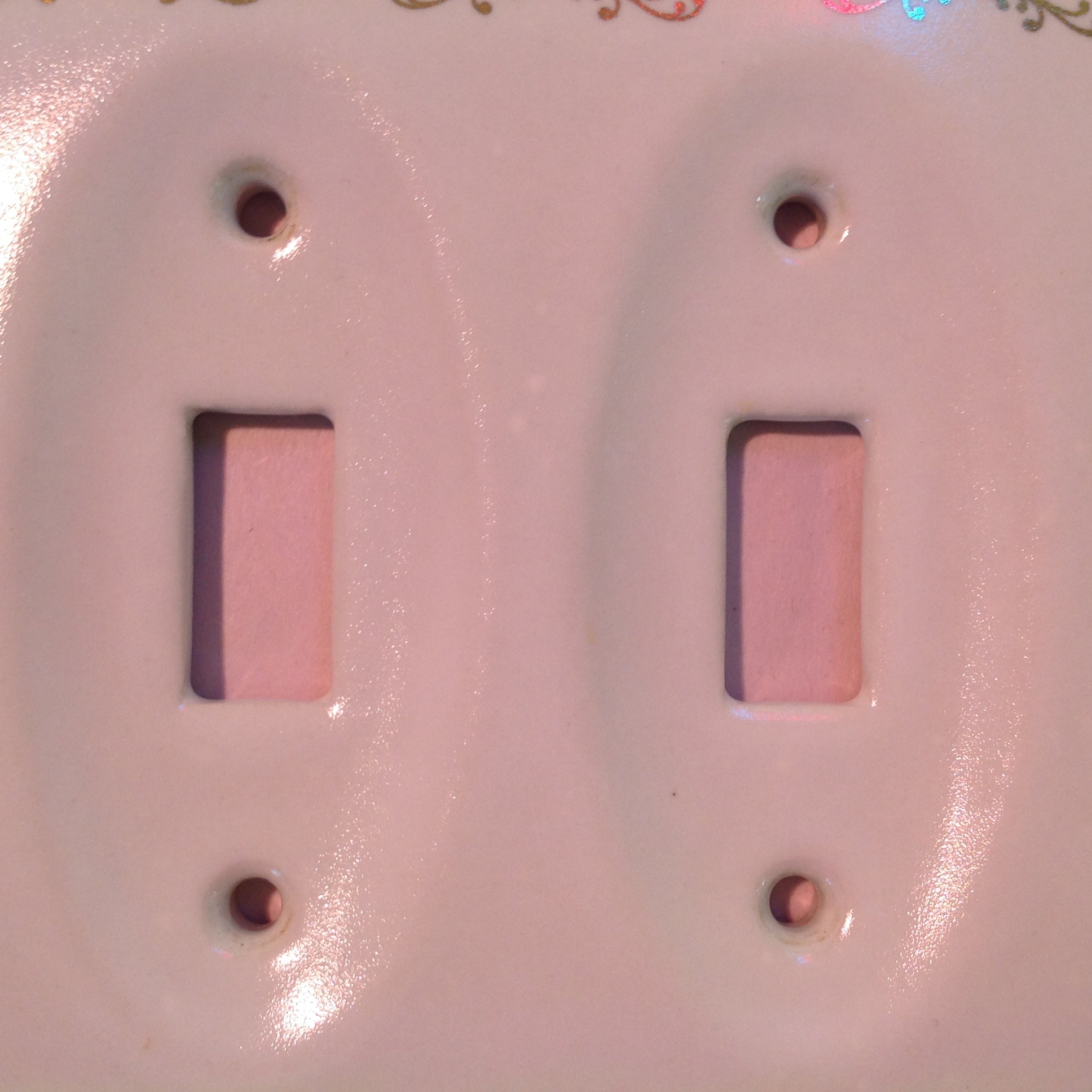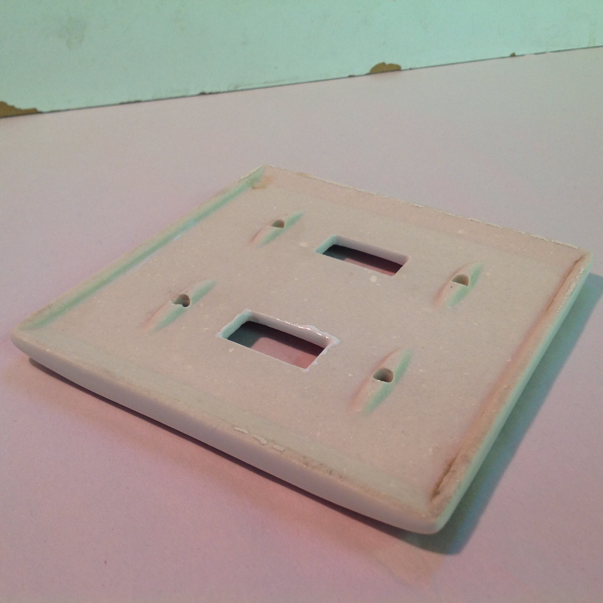 Vintage Lenape American Ceramics Ceramic Double Switchplate White Gold Filigree Hudson's Detroit
