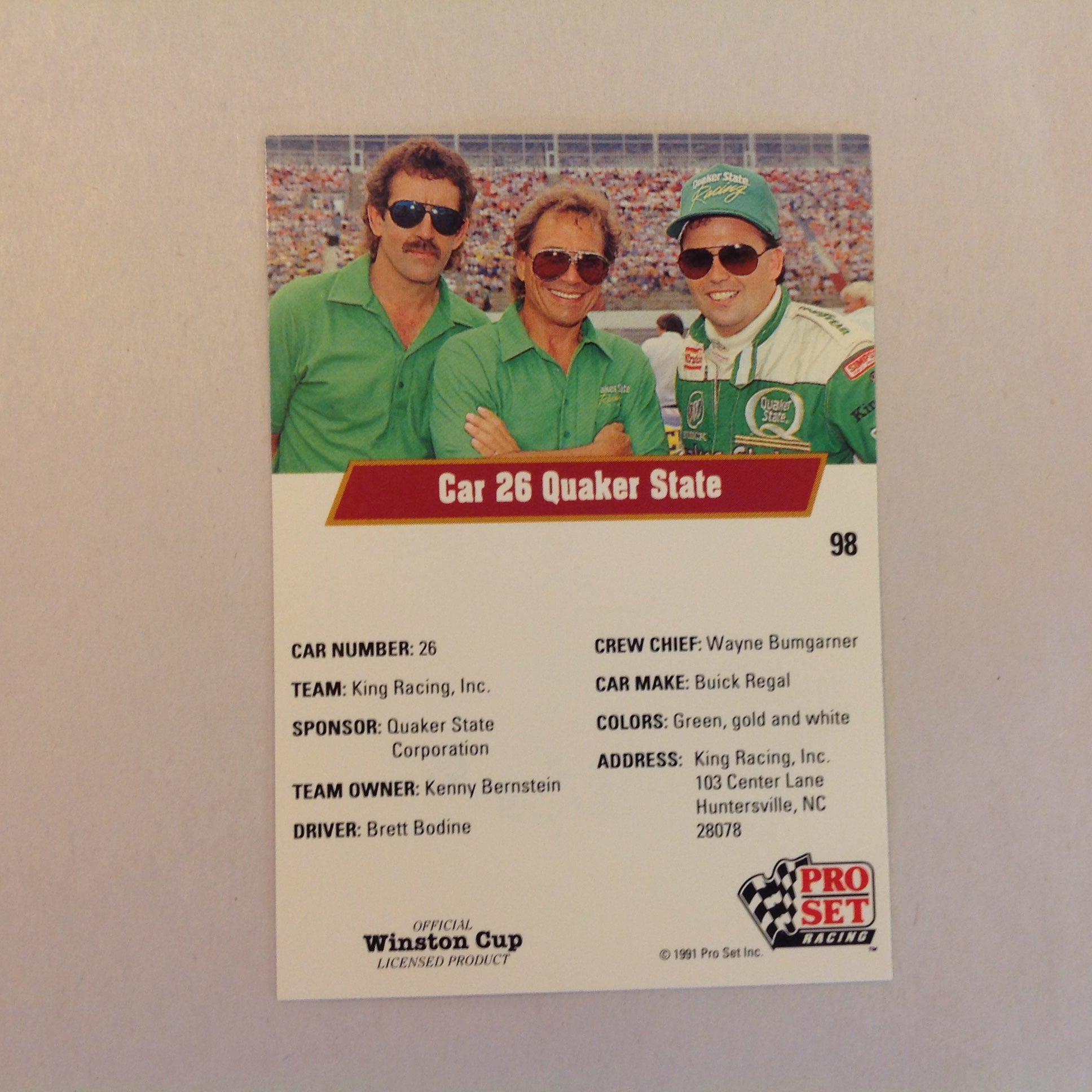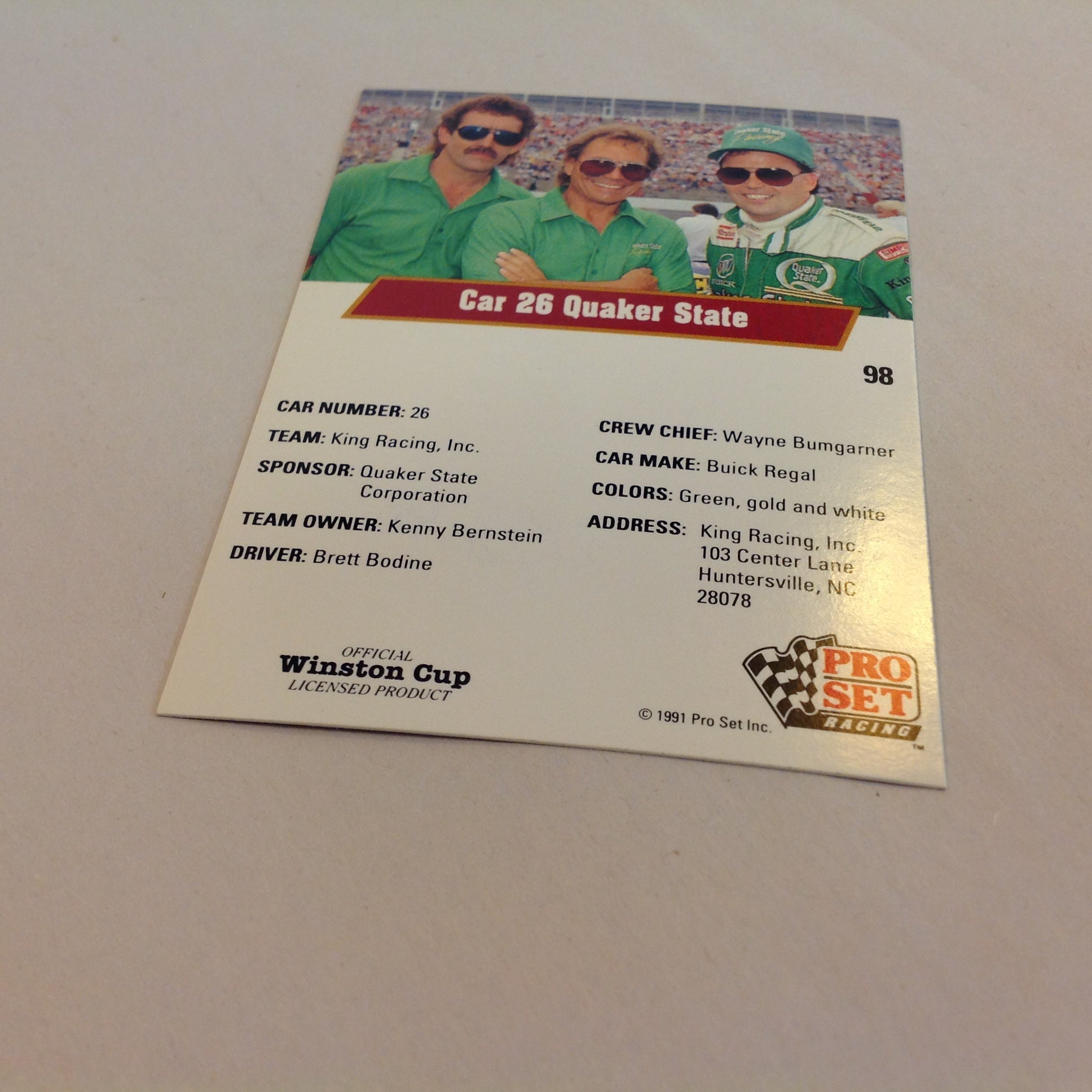 Vtg 1991 Pro Set Racing Signed Card Brett Bodine QS Oil 26 NASCAR Autographed