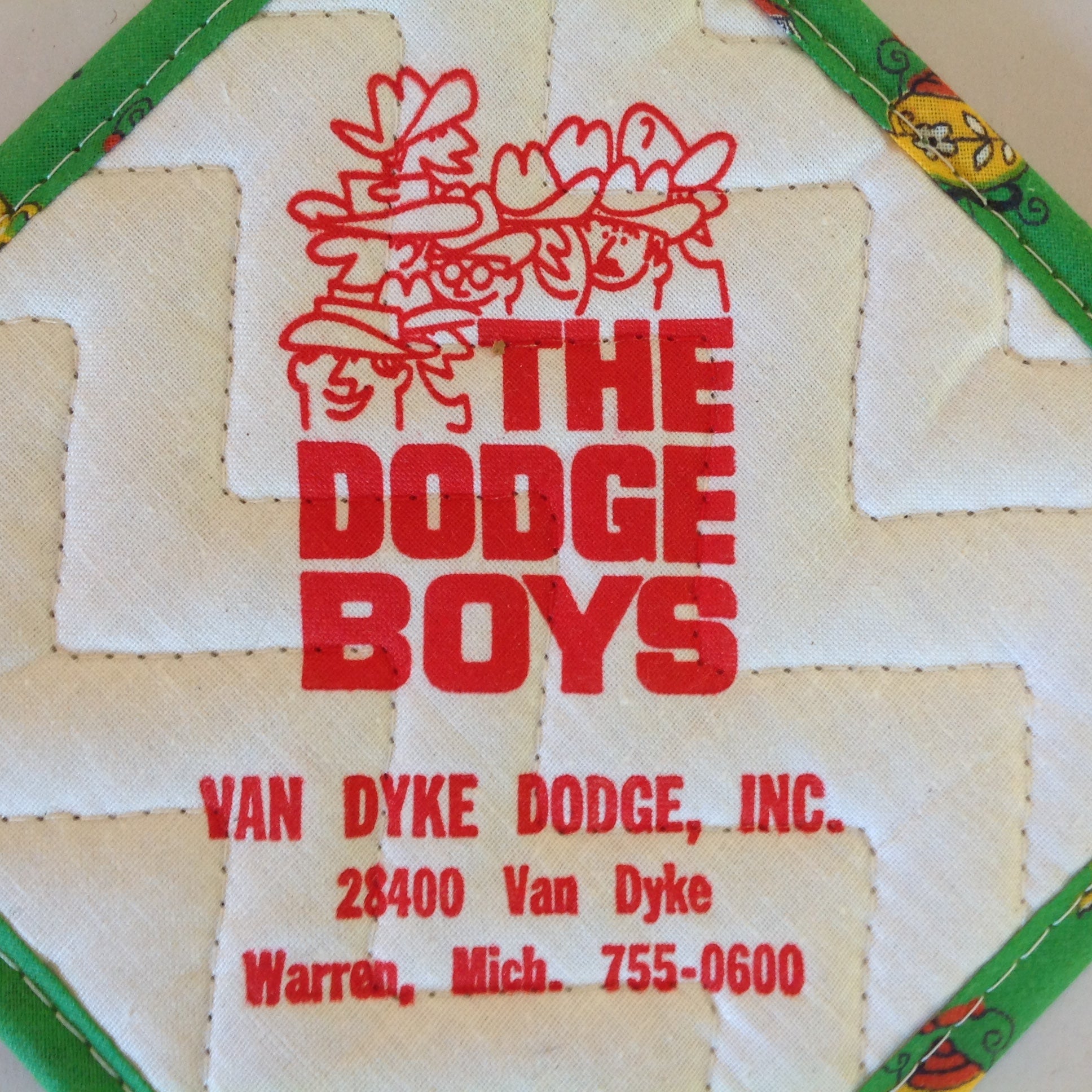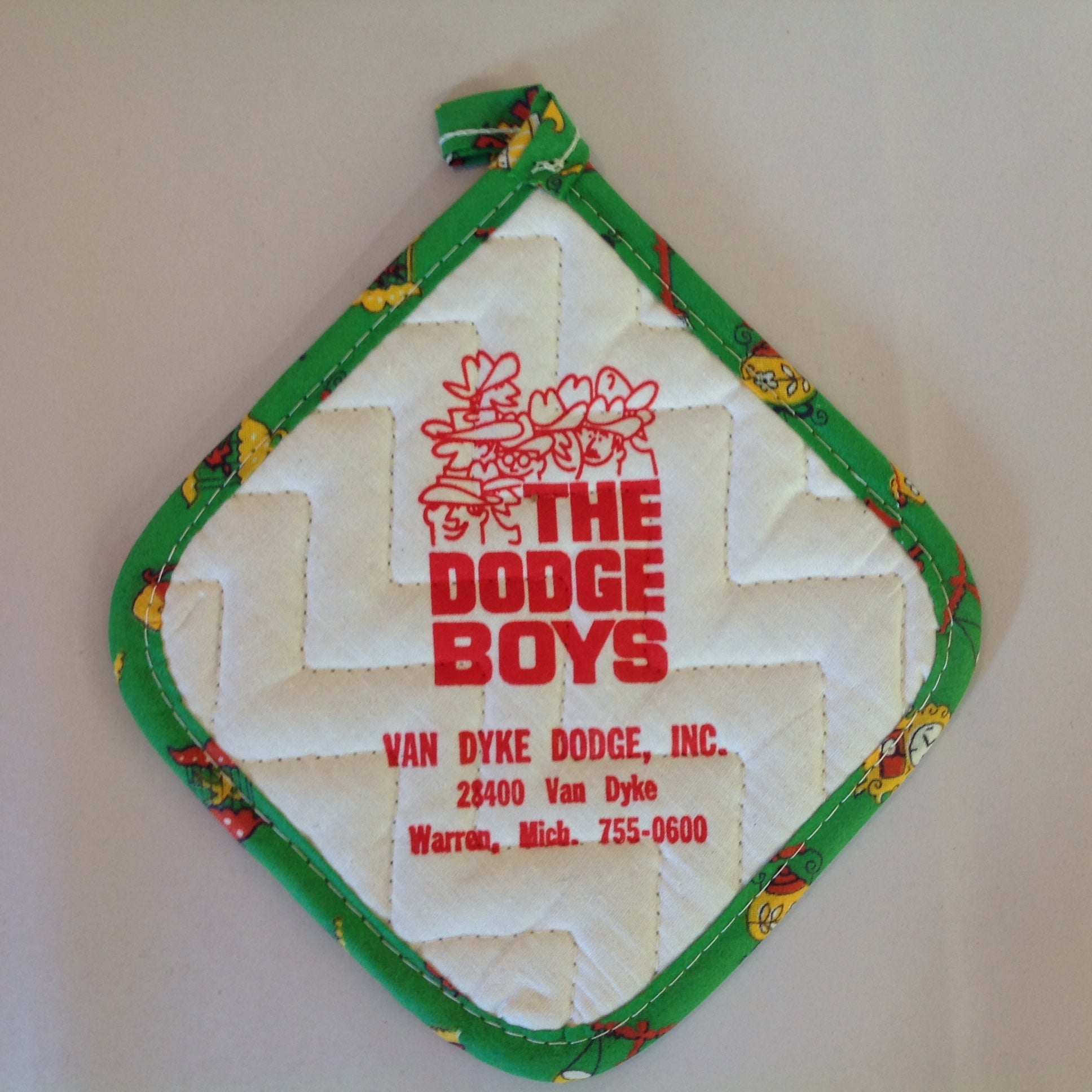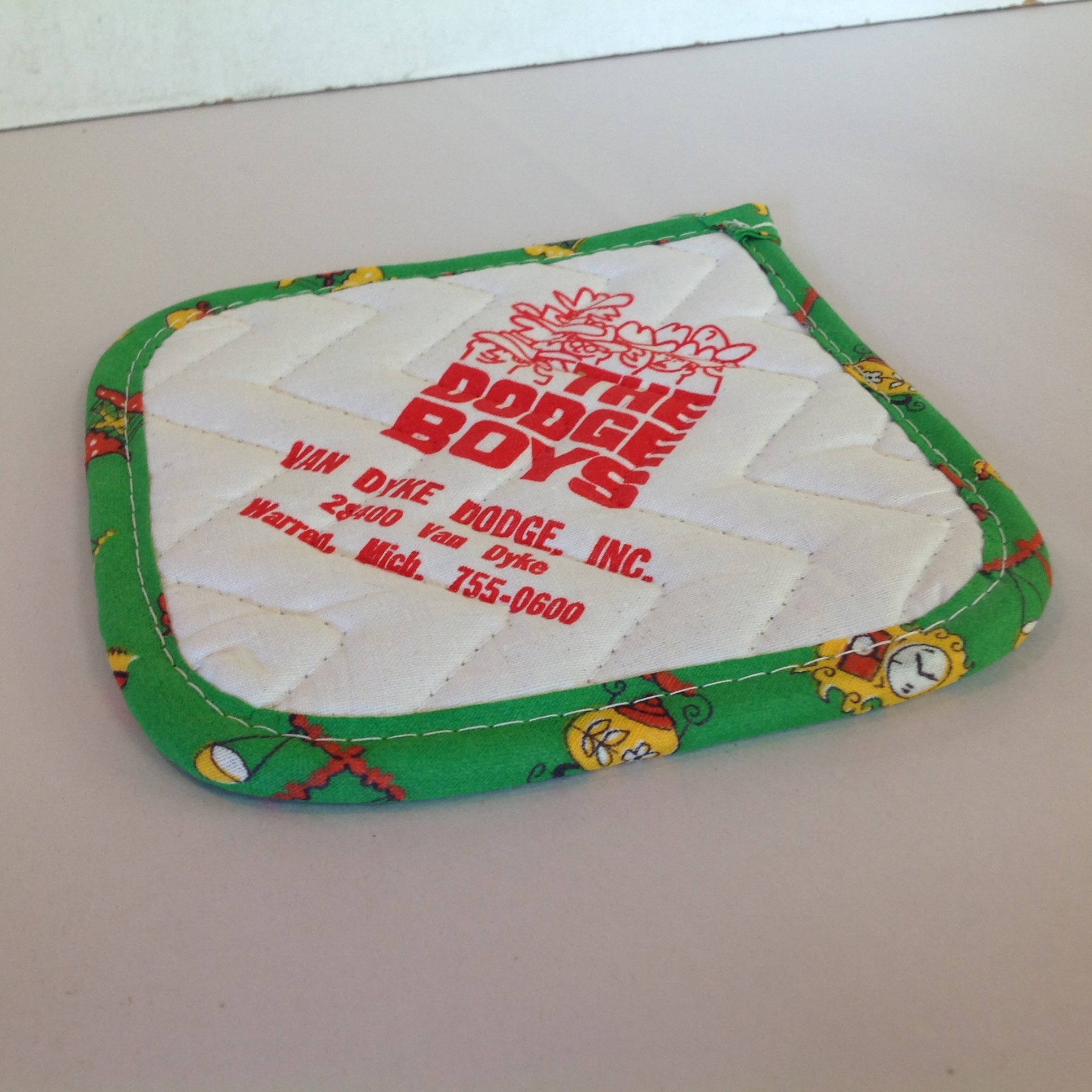 Vtg The Dodge Boys Pot Holder Hot Pad Van Dyke Dodge NOS Unused Green Detroit MI